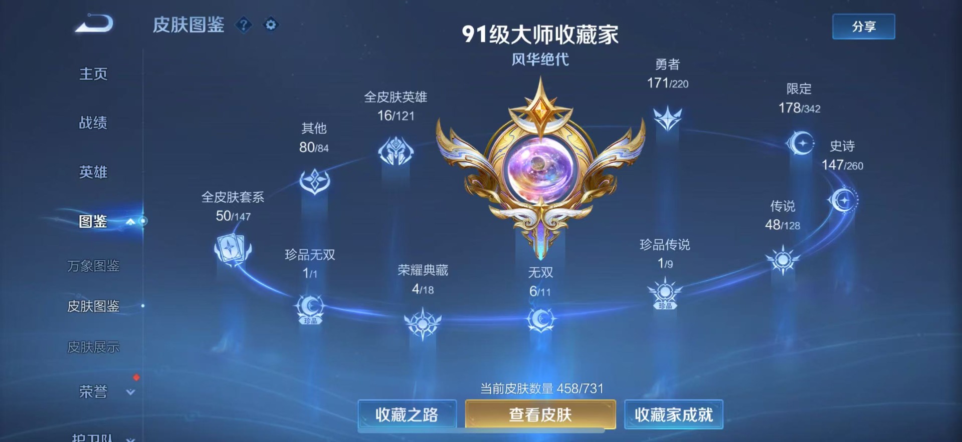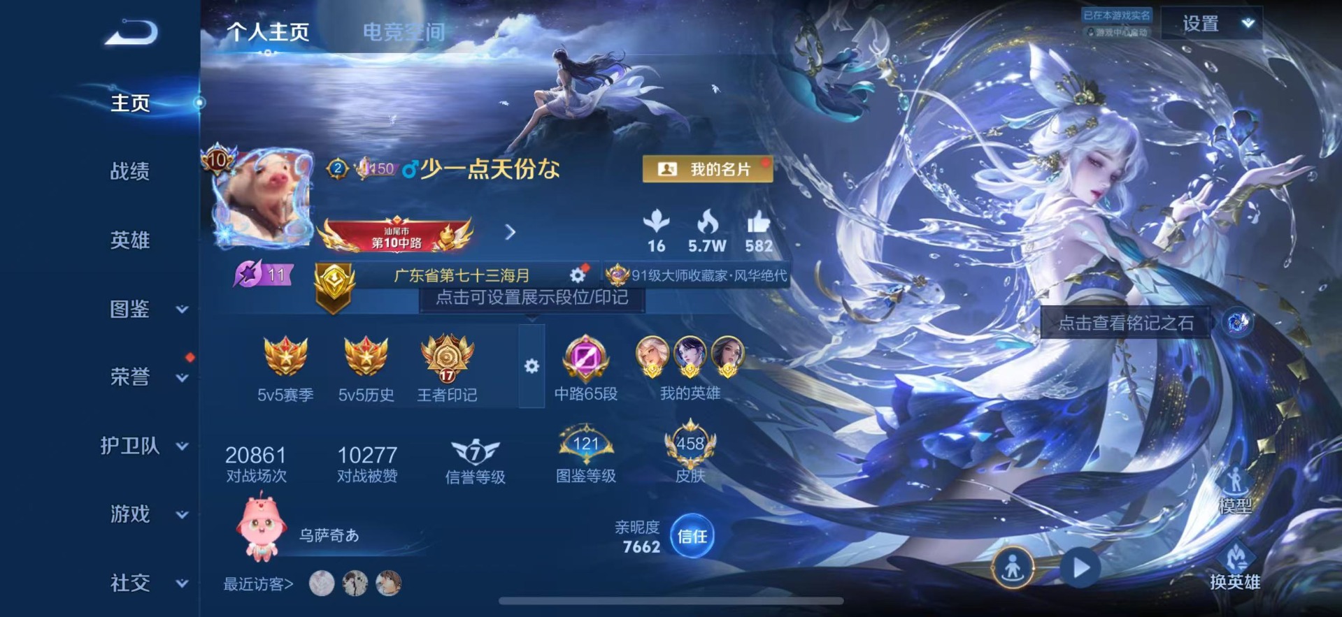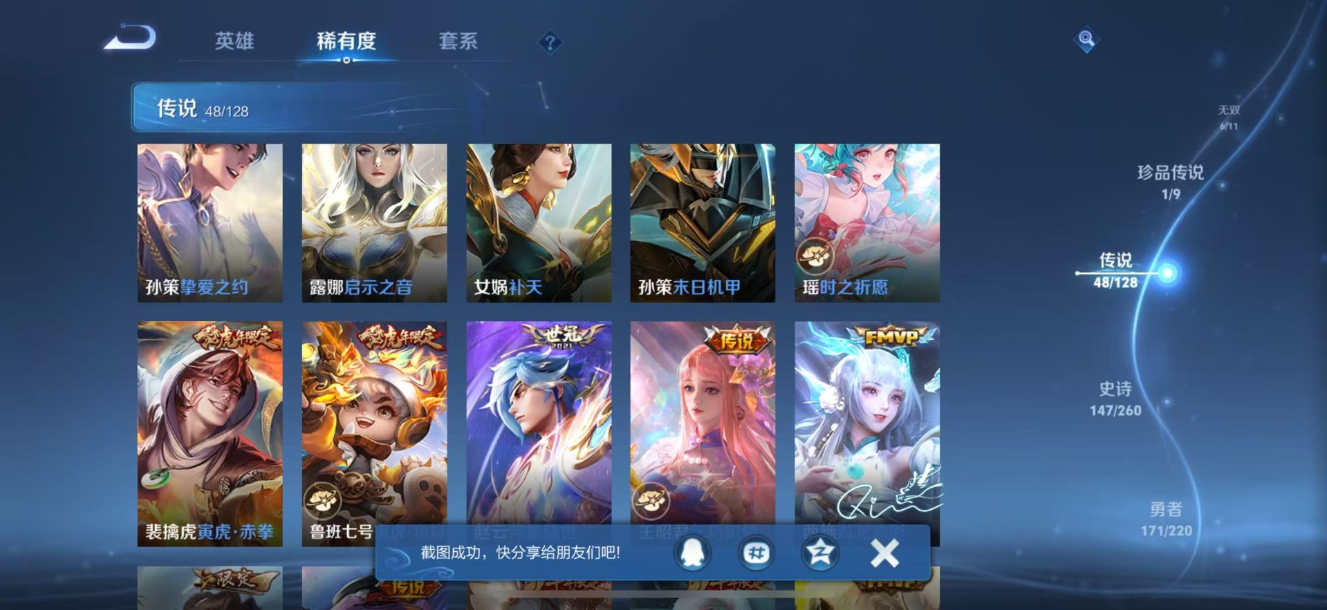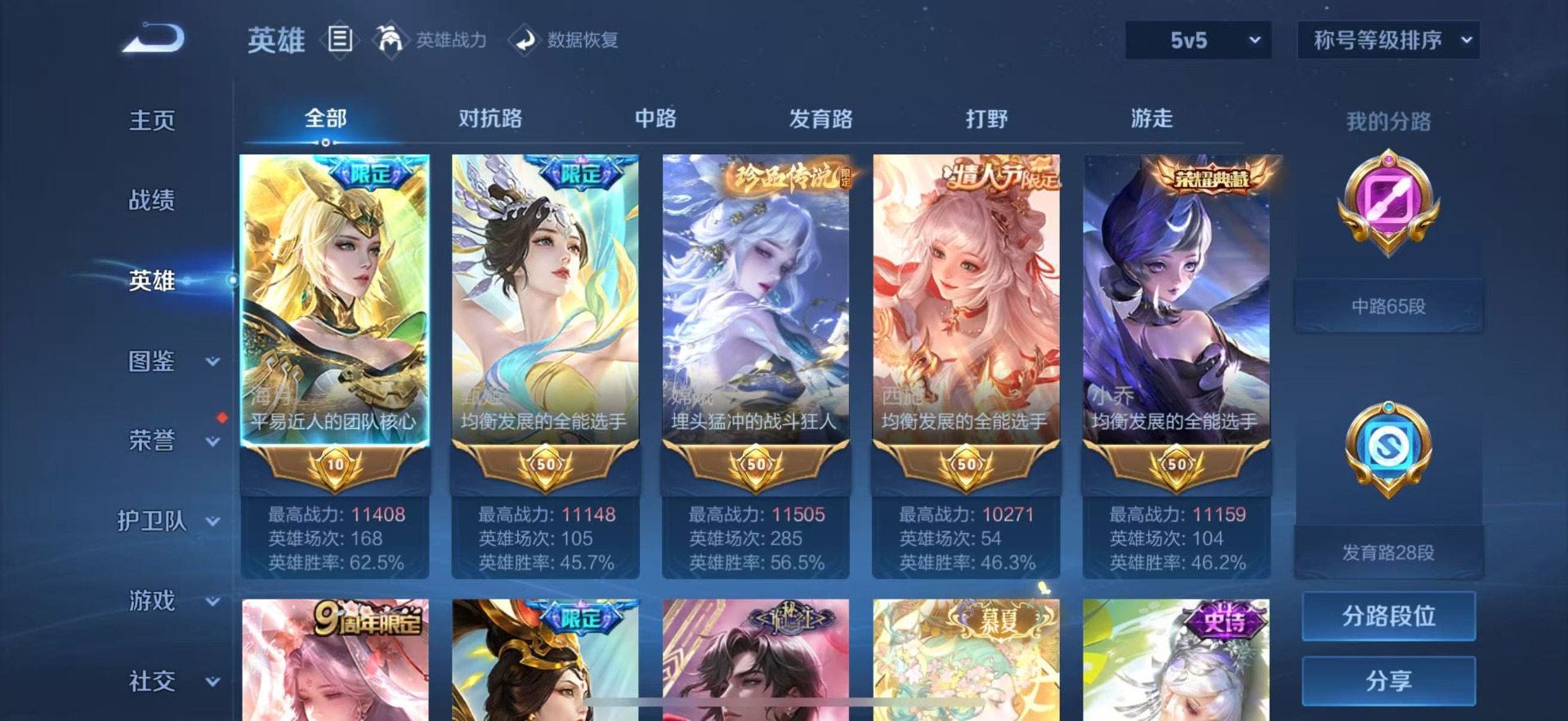 - PX_2095793-实名: 可修改 贵族等级: V3 英雄数: 90 皮肤数: 75 传说皮: 久胜战神,幻光神枪 限定皮: 鸣野蒿,愿照·岁时盈