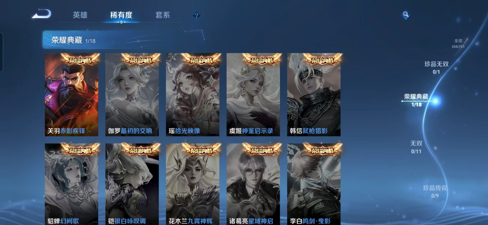 - [12297697]【商品标题】:安卓Q-V8-最强王者段位-125英雄-198皮肤-1典藏-0珍品无双-0无双-2珍品传说-10传说-55史诗 【荣耀典藏】:铠银白咏叹调 【珍品传说】:张飞兔狲蓬尾,暃朽木白哉 【传说皮肤】:司空震愿照山河定,嬴政玄雷天君,孙策乘龙淬吴钩,马超琥珀纪元,澜逐花归海,孙策末日机甲,虞姬启明星使,刘备时之恋人,干将莫邪久胜战神,孙悟空地狱火 【限定皮肤】:蒙犽顽岩魄,蔡文姬夏日便利店,虞姬夏日便利店,姜子牙天穹之誓,狄仁杰阴阳师,赵云皇家上将,夏侯惇朔风刀,狄仁杰魔术师,狄仁杰万华元夜,项羽海滩派对,刘邦夺宝奇兵,李元芳银河之约,李元芳云中旅人,虞姬启明星使,雅典娜单词大作战,鬼谷子原初探秘者,鬼谷子五谷丰年,弈星混沌棋,沈梦溪星空之诺,明世隐疑决卦,裴擒虎李小龙,云中君纤云弄巧,嫦娥拒霜思,西施玲珑珍味,蒙犽狂想玩偶喵,艾琳流音漫舞,司空震地狱燃心,张良古海寻踪,蒙犽百解令,高渐离燃音魔法,妲己灵卜魔法,鬼谷子天穹祈灯,伽罗琥珀纪元,马超琥珀纪元,姬小满妄想食味,孙策乘龙淬吴钩,沈梦溪龙舞盛年,李元芳蔬乡物语 【年限皮肤】:孙策乘龙淬吴钩 【赛季限定】:夏侯惇朔风刀,狄仁杰万华元夜,张良古海寻踪,李元芳云中旅人,鬼谷子原初探秘者,弈星混沌棋,明世隐疑决卦,鬼谷子天穹祈灯,姜子牙天穹之誓 【战令限定】:蔡文姬夏日便利店,虞姬夏日便利店,刘邦夺宝奇兵,艾琳流音漫舞,李元芳银河之约,雅典娜单词大作战,沈梦溪星空之诺,西施玲珑珍味,蒙犽狂想玩偶喵,司空震地狱燃心,高渐离燃音魔法,妲己灵卜魔法,李元芳蔬乡物语 【史诗皮肤】:赵云皇家上将,赵云未来纪元,甄姬冰雪圆舞曲,狄仁杰魔术师,宫本武藏鬼剑武藏,孙尚香水果甜心,妲己魅力维加斯,妲己女仆咖啡,墨子龙骑士,墨子金属风暴,吕布圣诞狂欢,刘禅绅士熊喵,曹操幽灵船长,李白千年之狐,张飞乱世虎臣,花木兰水晶猎龙者,刘邦德古拉伯爵,夏侯惇乘风破浪,兰陵王暗隐猎兽者,诸葛亮黄金分割率,雅典娜冰冠公主,百里守约特工魅影,铠曙光守护者,李元芳逐浪之夏,程咬金功夫厨神,白起星夜王子,阿轲节奏热浪,孙策猫狗日记,狄仁杰鹰眼统帅,李元芳银河之约,蒙犽狂想玩偶喵,裴擒虎李小龙,云中君纤云弄巧,杨戬天秀启明,嫦娥拒霜思,貂蝉唤灵魅影,鬼谷子五谷丰年,司空震地狱燃心,蒙犽百解令,妲己灵卜魔法,高渐离燃音魔法,伽罗琥珀纪元,姬小满妄想食味,