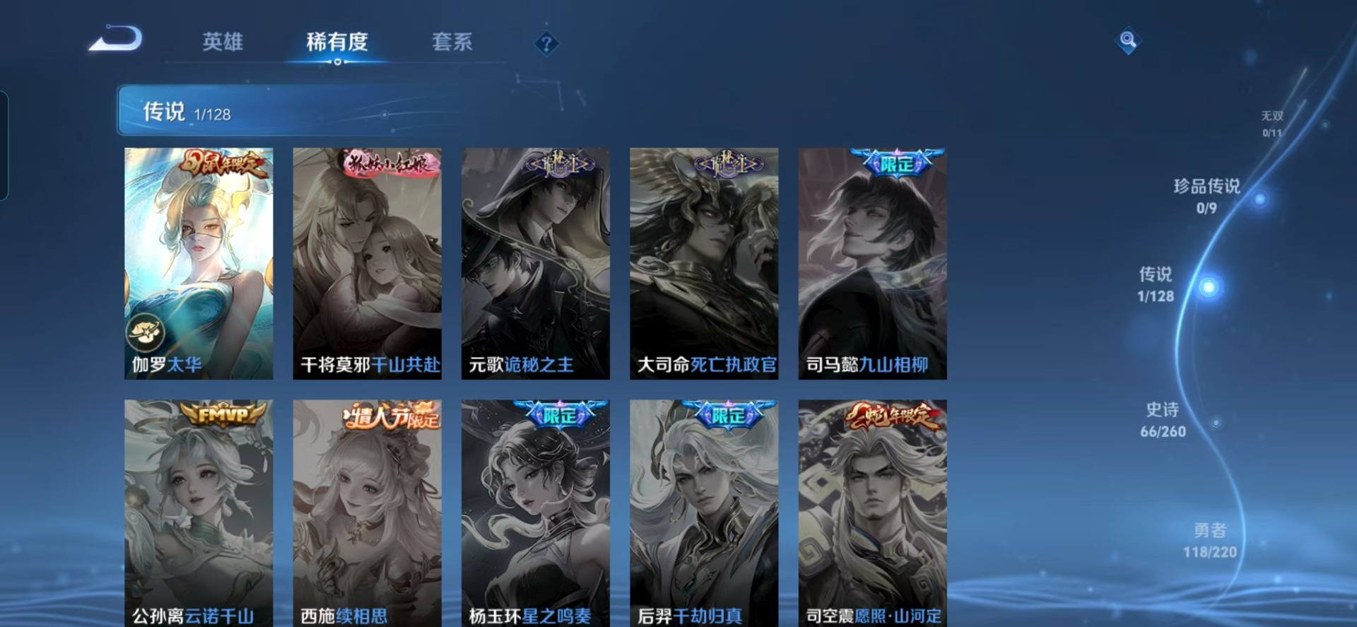 - [11528174]V7 1典藏 12传说 124英雄 245皮肤 可修改实名 优质装备:天鹅之梦(小乔典藏),李逍遥,超时空战士-狄仁杰,挚爱之约,霜月吟 珍宝阁皮:妄想食味,优雅恋人 限定皮:愿照·众生和(妲己年限),鸣野蒿,凤求凰(白切鸡),凤凰于飞,武陵仙君(小桃花),前尘镜,高山流水,诗剑行,五谷丰年,梁祝,孙行者,猪悟能,一生所爱,引擎之心,青春决赛季,蜜橘之夏,神奇女侠,时之祈愿-云中君,玉兔公主,启示之音,深海之息(深海大菠萝),山海·玄木吟(马可年限) 史诗皮:星界战将,破空之剑,星界特工,遇见神鹿,紫霞仙子,电玩小子(小书包),白龙吟,黄金分割率,特工魅影,千年之狐,蒙恬荣光圣徽,冰冠公主,青蛇,偶像歌手,末日机甲-吕布,猫狗日记-孙策,节奏热浪,摇滚巨星,水果甜心,天才门将,心灵骇客,德古拉伯爵,暗隐猎兽者,幽灵船长,鬼剑武藏,乘风破浪,逐浪之夏,水晶猎龙者,金属风暴,原初追逐者,圣诞狂欢,圣诞恋歌,鹰眼统帅,魅力维加斯,黎明之约,赏金猎手,未来纪元-赵云