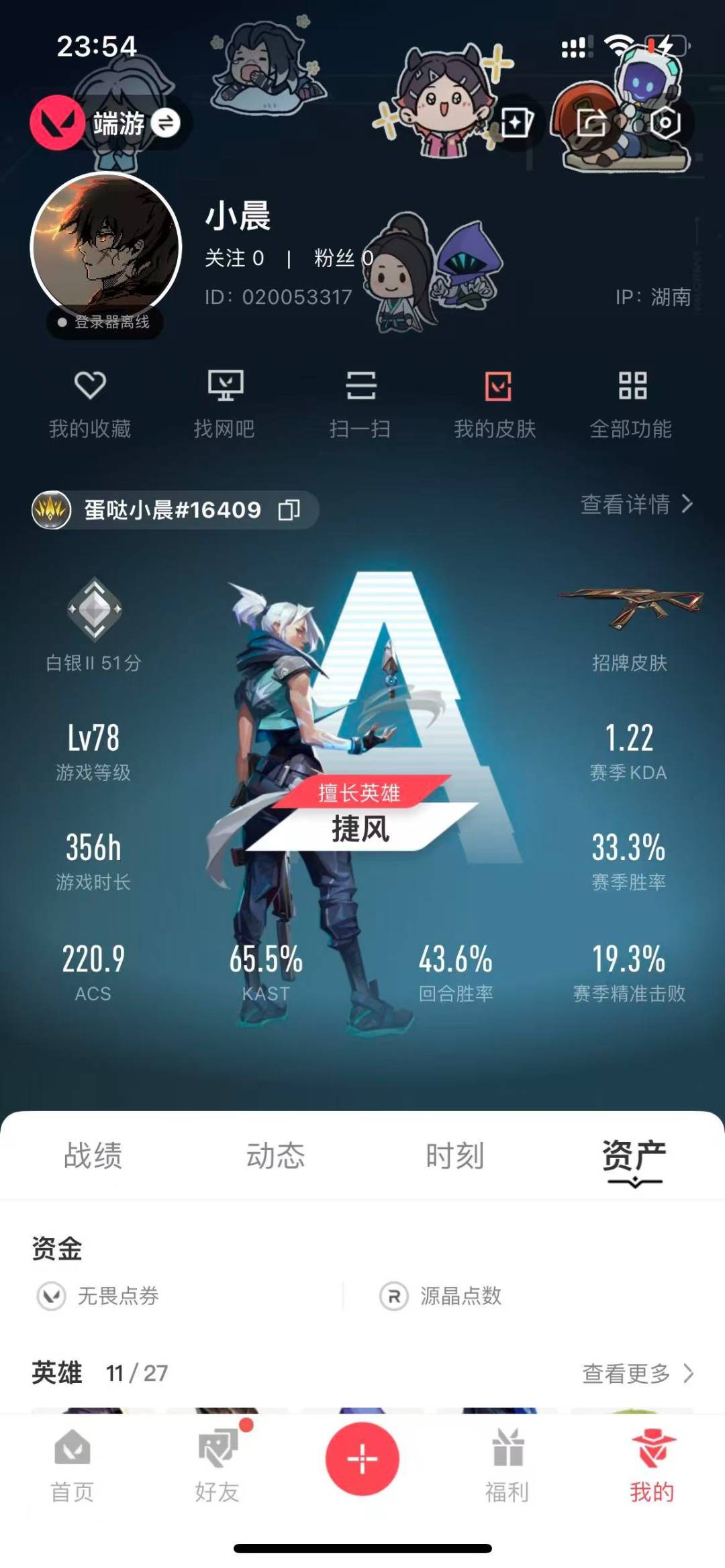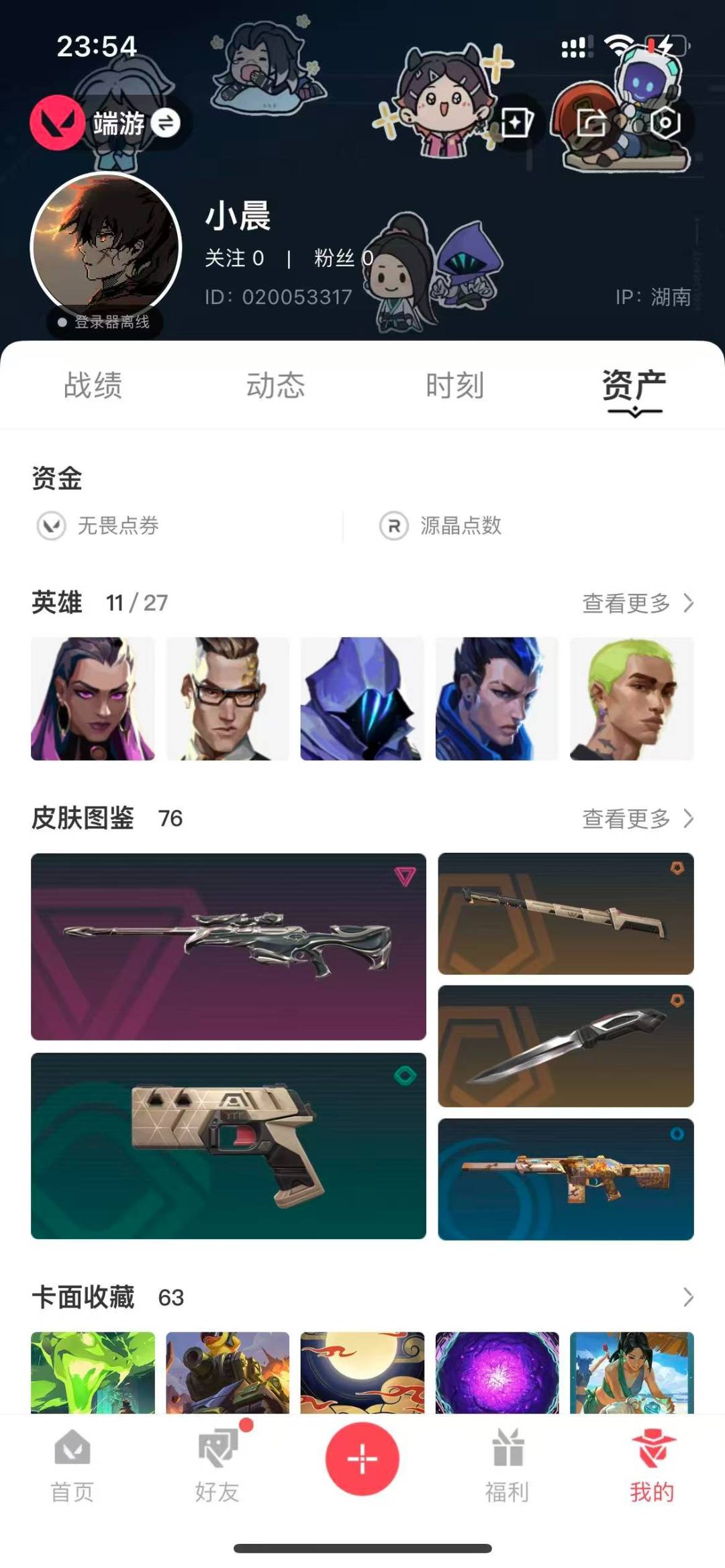 [12116526]24橙皮 2金皮 15紫皮 76皮肤 11英雄 63卡面 1430已用源晶 白银 优质装备:冥驹-归零者,狂徒-塑水宗,幻影-奇点,幻影-侦察力量,正义-塑水宗,冥驹-堕天遗武,狂徒-洪荒怒焰,幻影-天界神兵2.0,正义-千灵华绽,戍卫-盖亚的复仇,偃月,冥驹-起源,定海神珍,奥丁-光明哨兵2.0,圣石匕首,狂徒-耀鳞威龙,天御刀,夜刃诡镰,蝴蝶刀-奇点//2.0,RGX 11z Pro//2.0 蝴蝶刀,诡秘蛇影,神之刃,超时空卫队 三棱军刺,阿特拉斯指挥部,雄鹿-起源,鬼魅-耀鳞威龙 套装:神罚套装,神中神罚套装 佩枪皮肤:标配-VCT25xBBL,狂怒-神中神罚,正义-西部未来 冲锋枪皮肤:骇灵-神中神罚 霰弹枪皮肤:判官-上古龙炎 步枪皮肤:幻影-异鳞魔蛇,獠犬-黯夜怪谈,狂徒-光荣异象,狂徒-离子武器2.0,幻影-神中神罚,狂徒-堕天遗武 狙击枪皮肤:冥驹-上古龙炎,莽侠-神中神罚