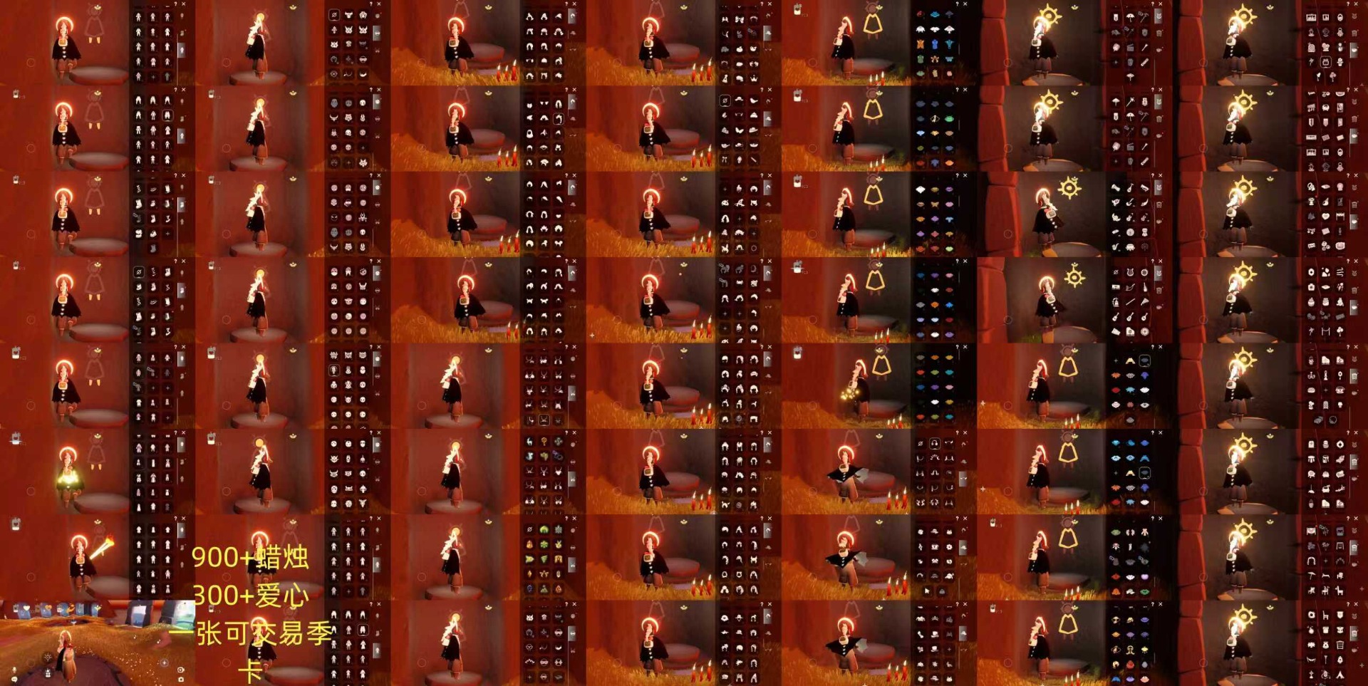 - [11602969]【毕业图】晨岛,霞谷,暮土 【毕业季】梦想季,集结季,表演季 【蜡烛】47 【爱心】75 【稀有礼包】星月头冠,彩虹耳饰,彩虹耳机,火焰眼镜,圣诞鹿角,冥龙角,巫师帽,贝壳发饰,玉兔发饰,创始人斗篷,小王子围巾,星球夹克,欧若拉之翼,海龟斗篷,蝙蝠斗,蛛网斗篷,暖冬瑞雪,绊爱礼包,粽叶斗篷,瑞气纸伞,狐狸背包,冥龙南瓜,献瑞折扇礼包,大橘大利,南瓜头,金鳞耳饰 【毕业物品】手拍大鼓,凤凰面具,凤凰斗篷,单边小辫,维京斗篷,帝企鹅发,黄眉企鹅面具,燕尾斗篷,丛林黑面具,六边锅帽子,胜利号角,连帽斗篷,小王子发型,小王子套装,彩染围巾斗篷 【热门复刻】绿芽,海洋斗,武士裤,虚荣,正太头,猫猫头,背带裤,搓澡巾,花环长发,红耳机,箬笠,平顶帽,雨伞,高音钢琴,白金斗篷,黑金斗篷,红金斗篷,黄鼠狼面具