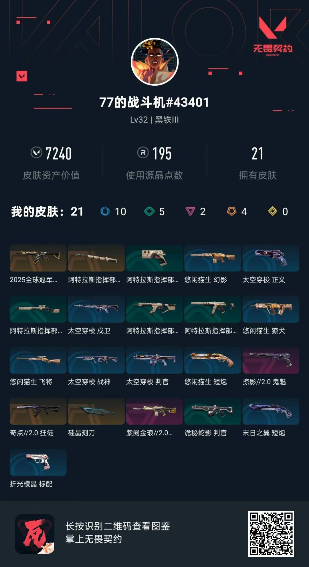 [11986642]4橙皮 2紫皮 21皮肤 12英雄 35卡面 195已用源晶 黑铁 优质装备:幻影-紫阙金琅2.0,狂徒-奇点//2.0,硅晶刻刀,阿特拉斯指挥部,2025全球冠军赛 狂徒 佩枪皮肤:鬼魅-掠影2.0