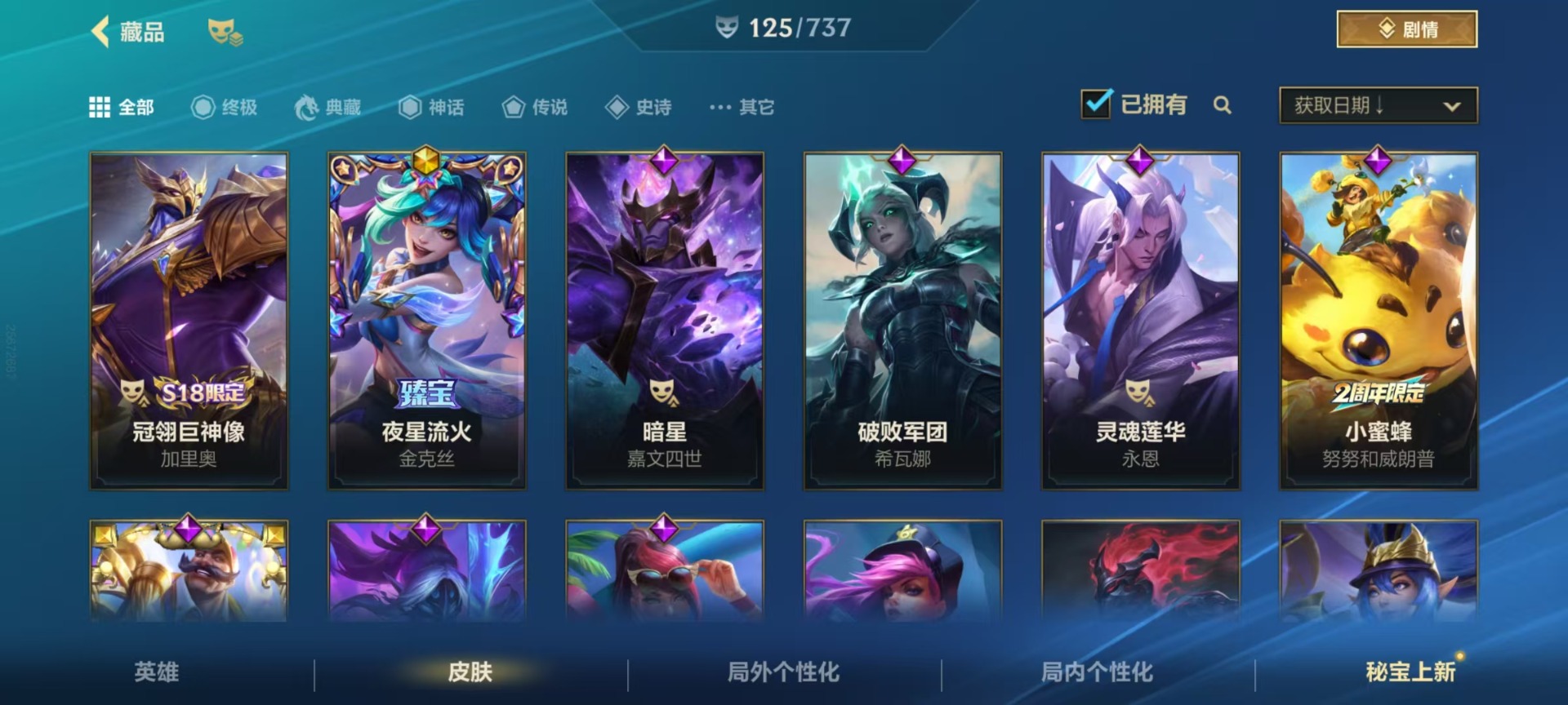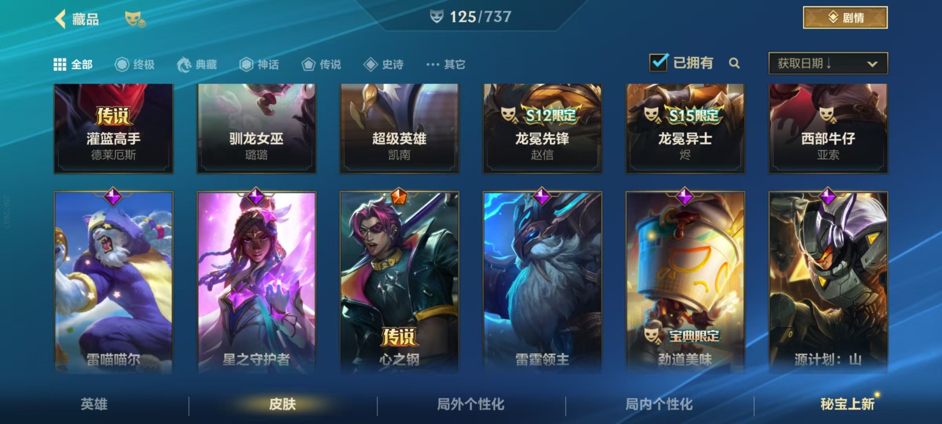 - [11443207]V7 1典藏 4传说 122英雄 173皮肤 可修改实名 优质装备:鸣剑·曳影,冠军飞将,炽阳神光 珍宝阁皮:优雅恋人 限定皮:至尊宝,凤求凰(白切鸡),梅西,武陵仙君(小桃花),遇见飞天,高山流水,五谷丰年,冰锋战神,游园惊梦,梁祝,天狼狩猎者,逐梦之翼,逐梦之星,李小龙,逐梦之光,真爱至上,青春决赛季 史诗皮:紫霞仙子,电玩小子(小书包),白龙吟,千年之狐,冰冠公主,偶像歌手,猫狗日记-孙策,水果甜心,德古拉伯爵,暗隐猎兽者,幽灵船长,地狱岩魂,拒霜思,缤纷独角兽,乘风破浪,逐浪之夏,水晶猎龙者,曙光守护者,圣诞狂欢,圣诞恋歌,鹰眼统帅,王者之锤,暗夜贵公子,魅力维加斯,无心,未来纪元-赵云