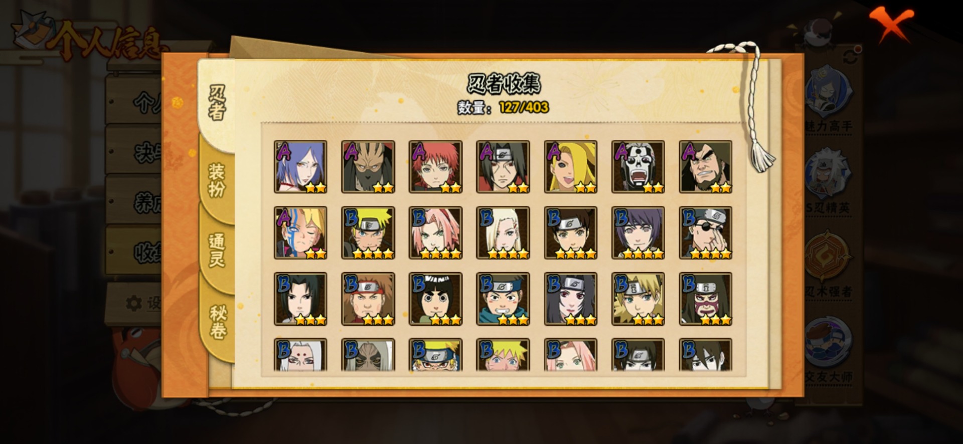 [12133121]V9 12S忍 24A忍 14通灵 722.2W战力 可二次 可修改实名 优质装备:千手扉间「秽土转生」,长门「秽土转生」,宇智波带土 「忍界大战」,春野樱 「忍界大战」,宇智波斑「秽土转生·解」,艾「忍界大战」,宇智波止水「须佐能乎」,旗木卡卡西「须佐能乎」 S级忍者:自来也 「舞之豪杰」,宇智波鼬 「须佐能乎」,佩恩「天道」,波风水门