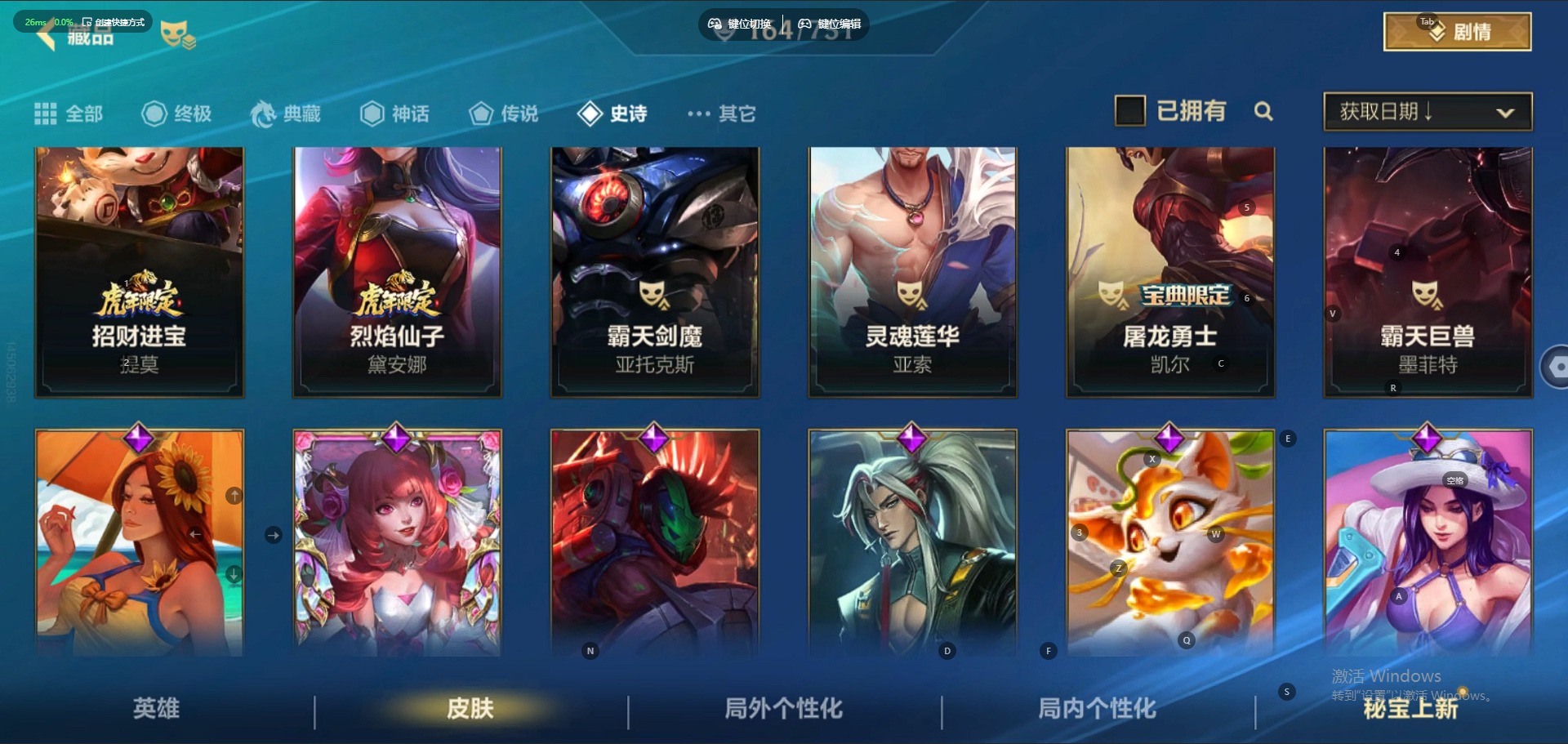- [11654202]V8 25传说 124英雄 210皮肤 可修改实名 传说皮:黄金天蝎座,乘龙·铭钟鼎(赵云年限),云诺千山,幻光神枪,山海·炽霜斩(李信年限),黄金狮子座,黄金射手座,仲夏夜之梦(大飞蛾),地狱之眼,一念神魔,淬星耀世,久胜战神,炽阳神光,碎云,燃星之曲,画中仙,电玩·雷克斯,鹤羽星尊,澜逐花归海 珍宝阁皮:妄想食味 限定皮:愿照·九州拓(澜年限),鸣野蒿,至尊宝,诗剑行,齐天大圣,怒海麟威,五谷丰年,龙胆,李小龙,山海·玄木吟(马可年限) 史诗皮:星界战将,器灵·浮梦炉,龙之律动,决胜骁骑,蔬乡物语(鲁班七号),化蝶舞,黄金分割率,特工魅影,千年之狐,江河有灵,蒙恬荣光圣徽,偶像歌手,电玩·爆裂旋风,百相守梦(刘备),末日机甲-吕布,猫狗日记-孙策,猫狗日记-大乔,摇滚巨星,水果甜心,功夫厨神,暗隐猎兽者,幽灵船长,鬼剑武藏,天秀·启明,舞动绿茵,乘风破浪,逐浪之夏,月团寄思,水晶猎龙者,曙光守护者,金属风暴,圣诞狂欢,圣诞恋歌,鹰眼统帅,暗夜贵公子,未来纪元-赵云