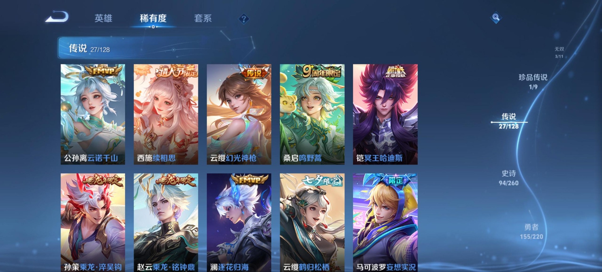 - PX_2027005-贵族7/皮肤231/传说15/史诗58/英雄123/特工战影/地狱之眼/末日机甲女/黄金射手座/胖达荣荣/时之恋人男/炽阳神光/飞鸢探春/碎云/诗剑行/炽翼辉光/无限倾心女/画中仙/记忆之芯/鹤羽星尊/桑启鸣野蒿/姜子牙天穹之誓/狄仁杰阴阳师/赵云皇家上将/庄周高山流水/钟无艳超时空战士/扁鹊奇幻香踪/猎兽之王/云间偶戏/元歌无心/朔风刀/甄姬落雪兰心/穷奇/山海玄木吟/狄仁