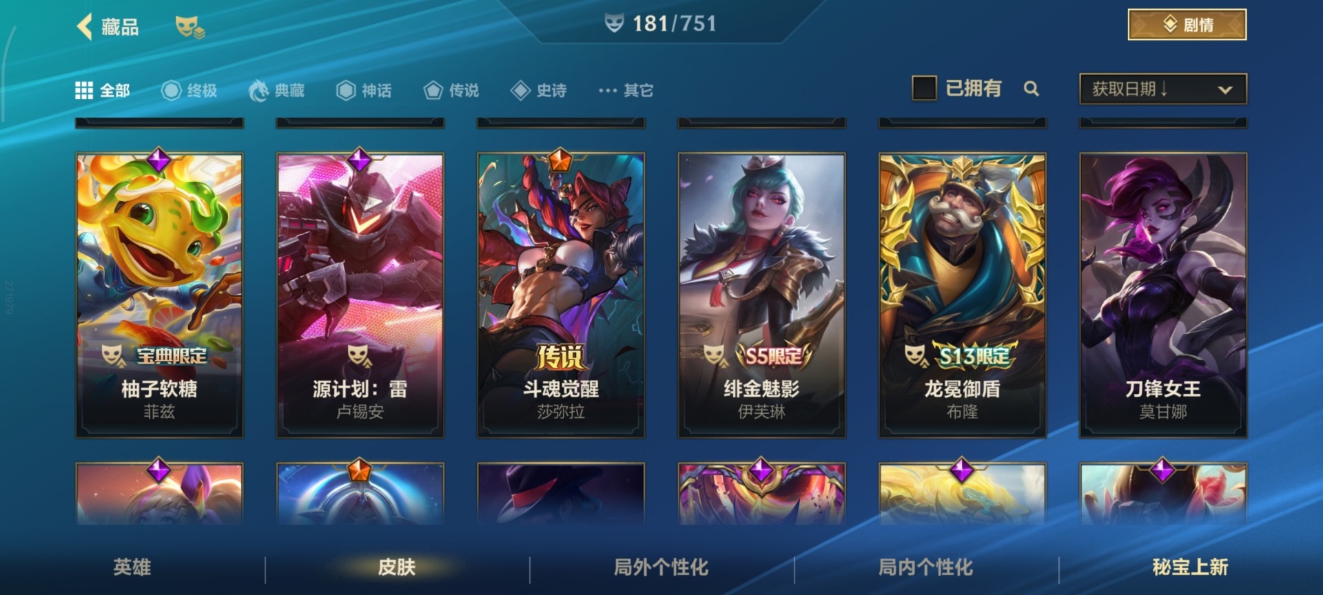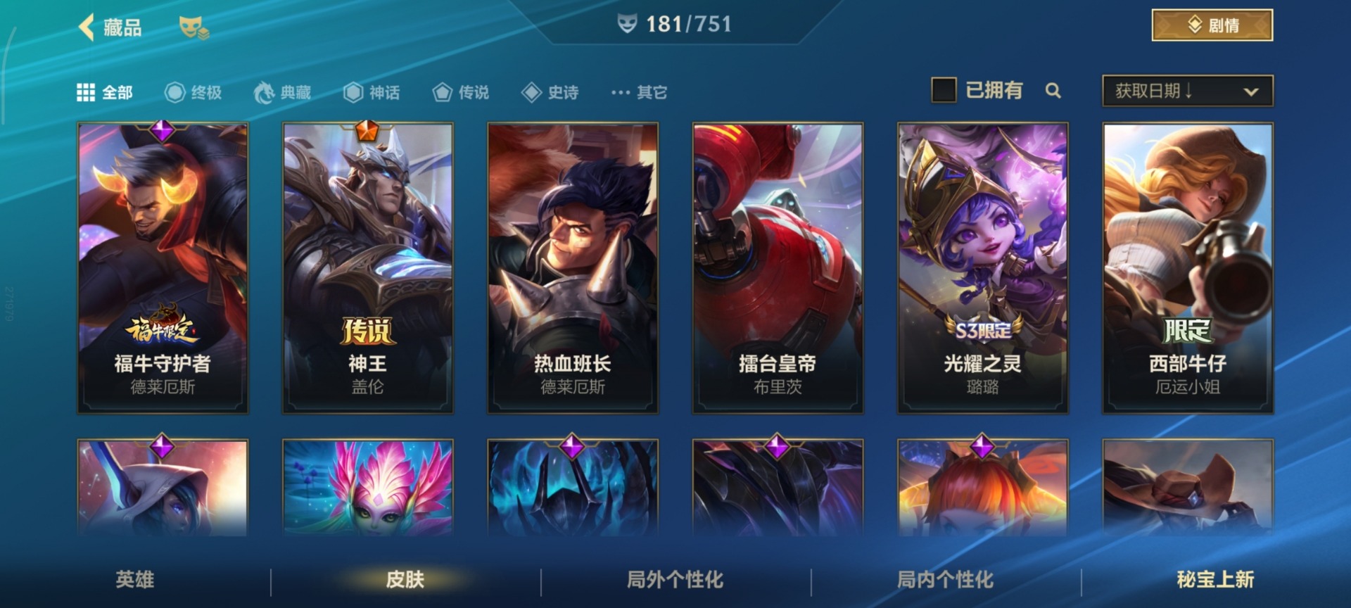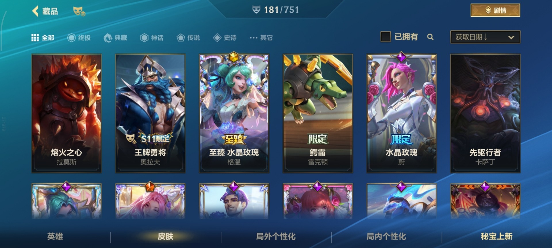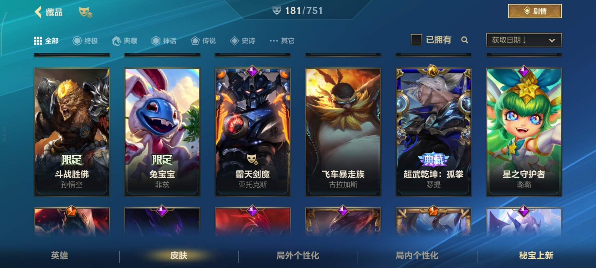 - PX_2009413-贵族等级: V7 英雄数: 121 皮肤数: 195 传说皮: 黄金白羊座,久胜战神,淬星耀世,末日机甲-孙策,乘龙·问璇玑 限定皮: 时雨天司,青春决赛季,孙行者,傲雪梅枪,五谷丰年