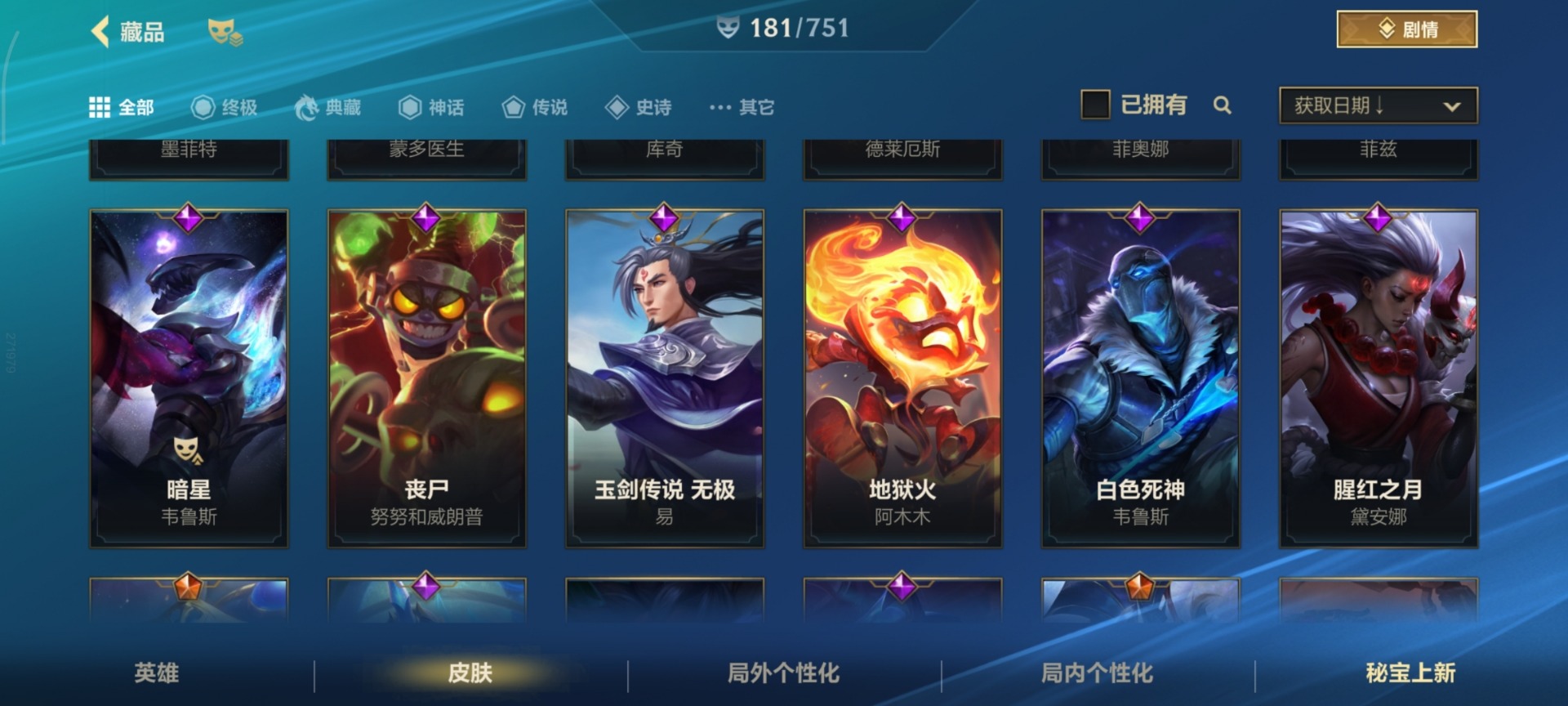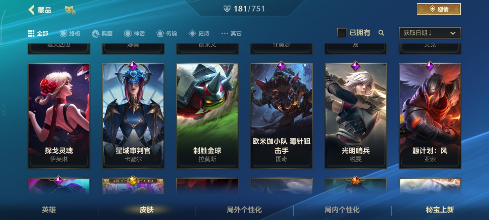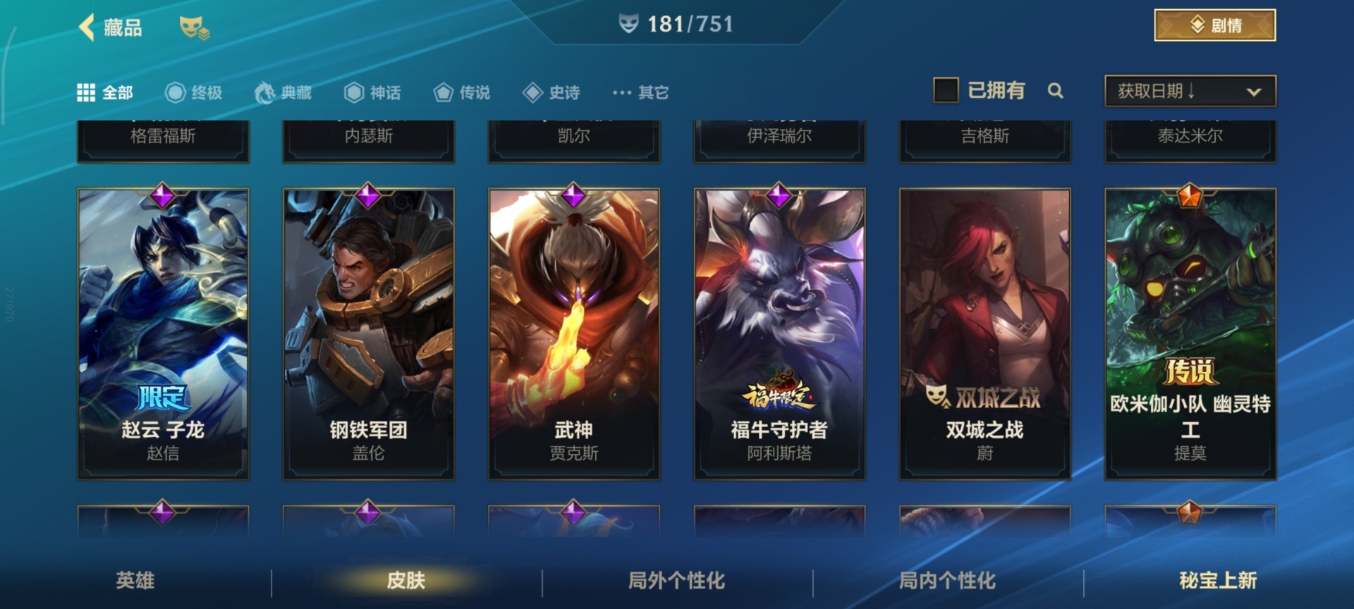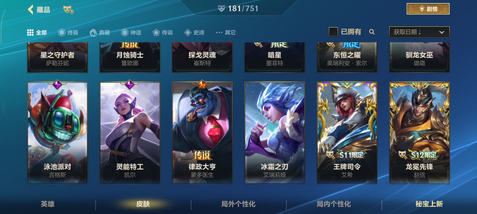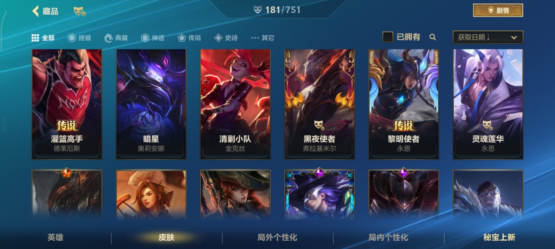 - PX_2009413-贵族等级: V7 英雄数: 121 皮肤数: 195 传说皮: 黄金白羊座,久胜战神,淬星耀世,末日机甲-孙策,乘龙·问璇玑 限定皮: 时雨天司,青春决赛季,孙行者,傲雪梅枪,五谷丰年