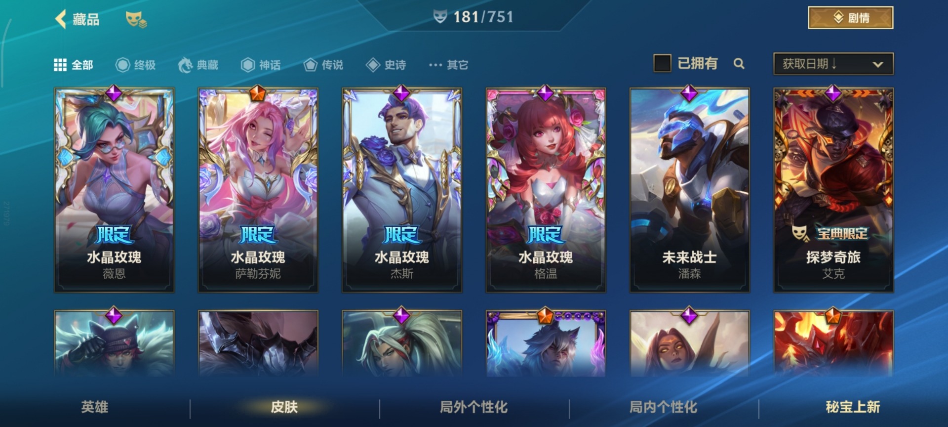 - PX_2104945-安卓QQ 256皮 贵族8级 1典藏 2珍品传说 9传说 64史诗【荣耀典藏】星域神启【珍品传说】怪盗基德,江户川柯南【传说皮肤】零号·赤焰,地狱火,末日机甲,久胜战神,鸣野蒿,启明星使,武陵仙君,炽阳神光,无双飞将【史诗皮肤】石田雨龙,梁祝,魅语,破空之剑,箭羽风息,无限星赏官,暗隐猎兽者,蓝屏警告,绅士熊喵,暗渊魔法,辉光之辰,金属风暴,乘风破浪,魅力维加斯,拒霜思,白昼
