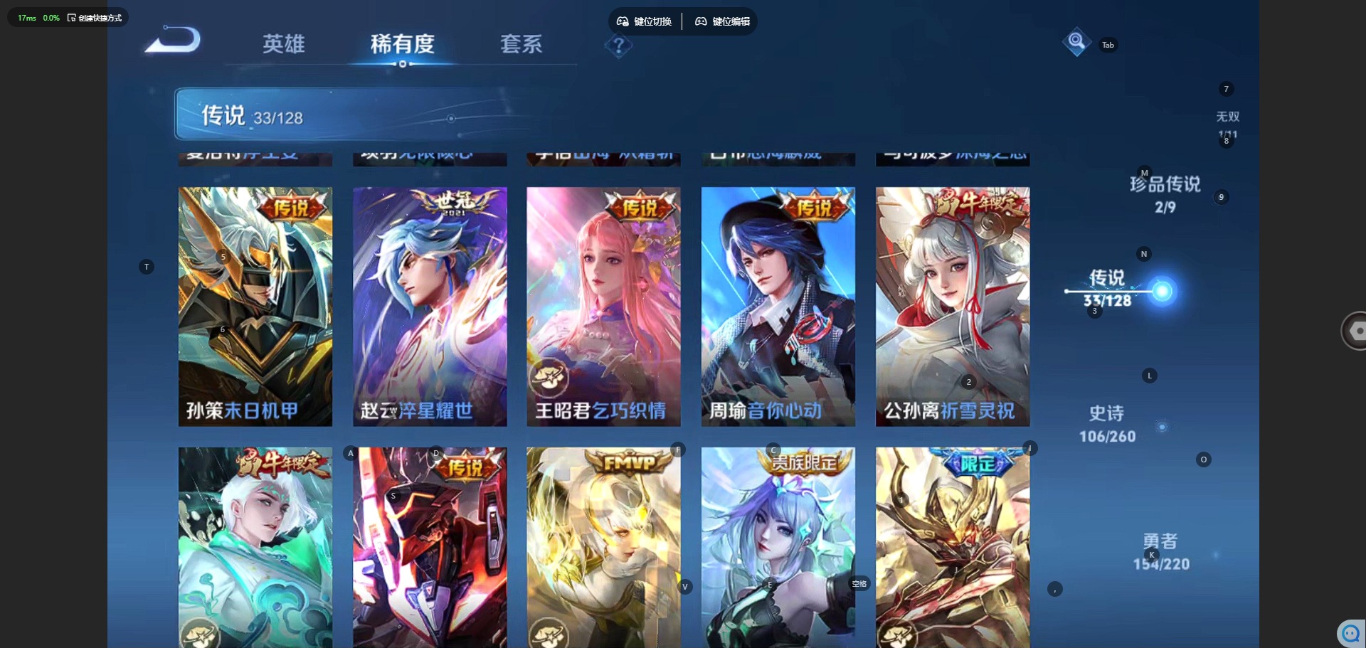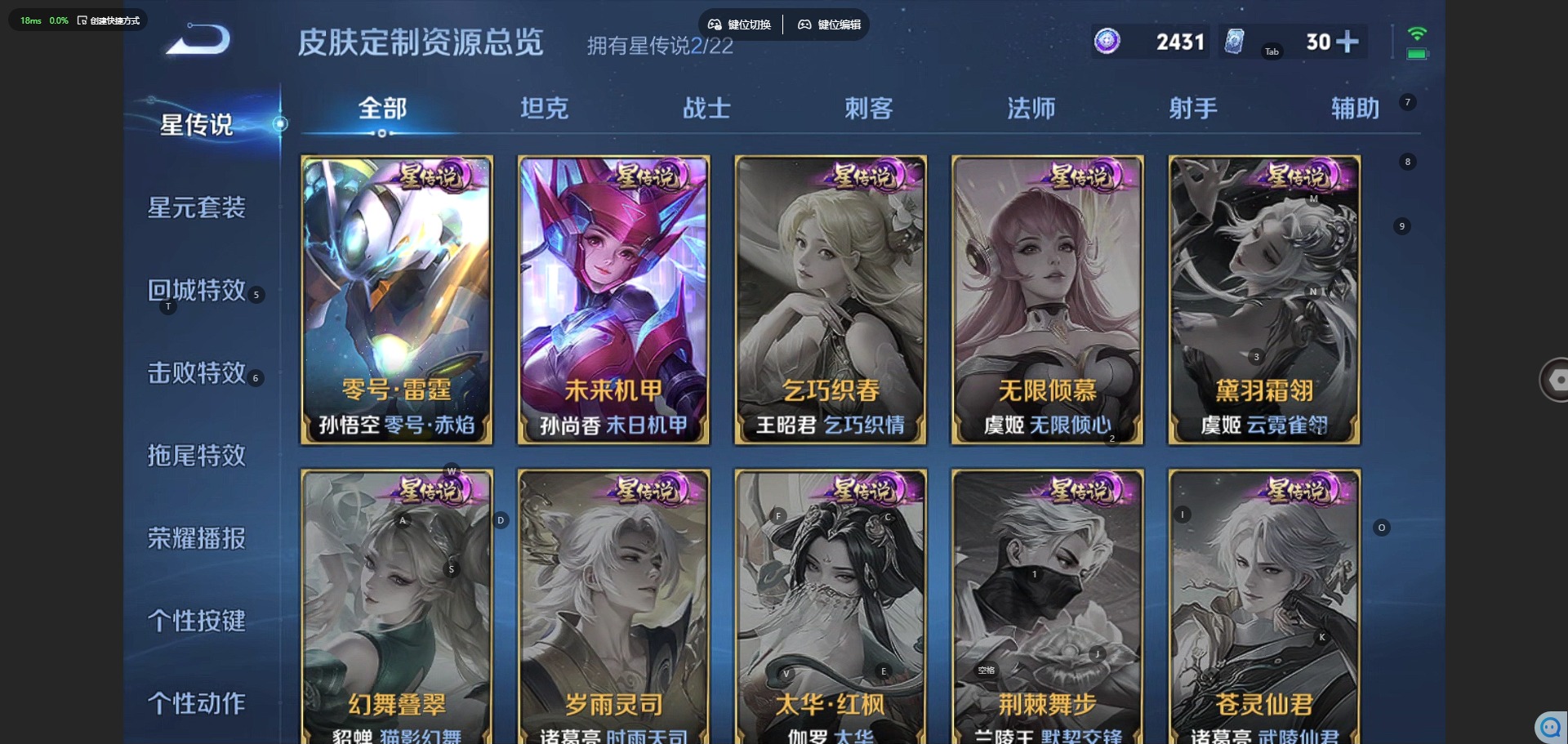 铠绛天战甲,刘备时之恋人,赵云淬星耀世,李信一念神魔,孙策末日机甲,王昭君乞巧织情,镜炽阳神光,周瑜音你心动,貂蝉猫影幻舞,夏洛特浮生妄,孙悟空零号·赤焰,曜云鹰飞将,云缨幻光神枪