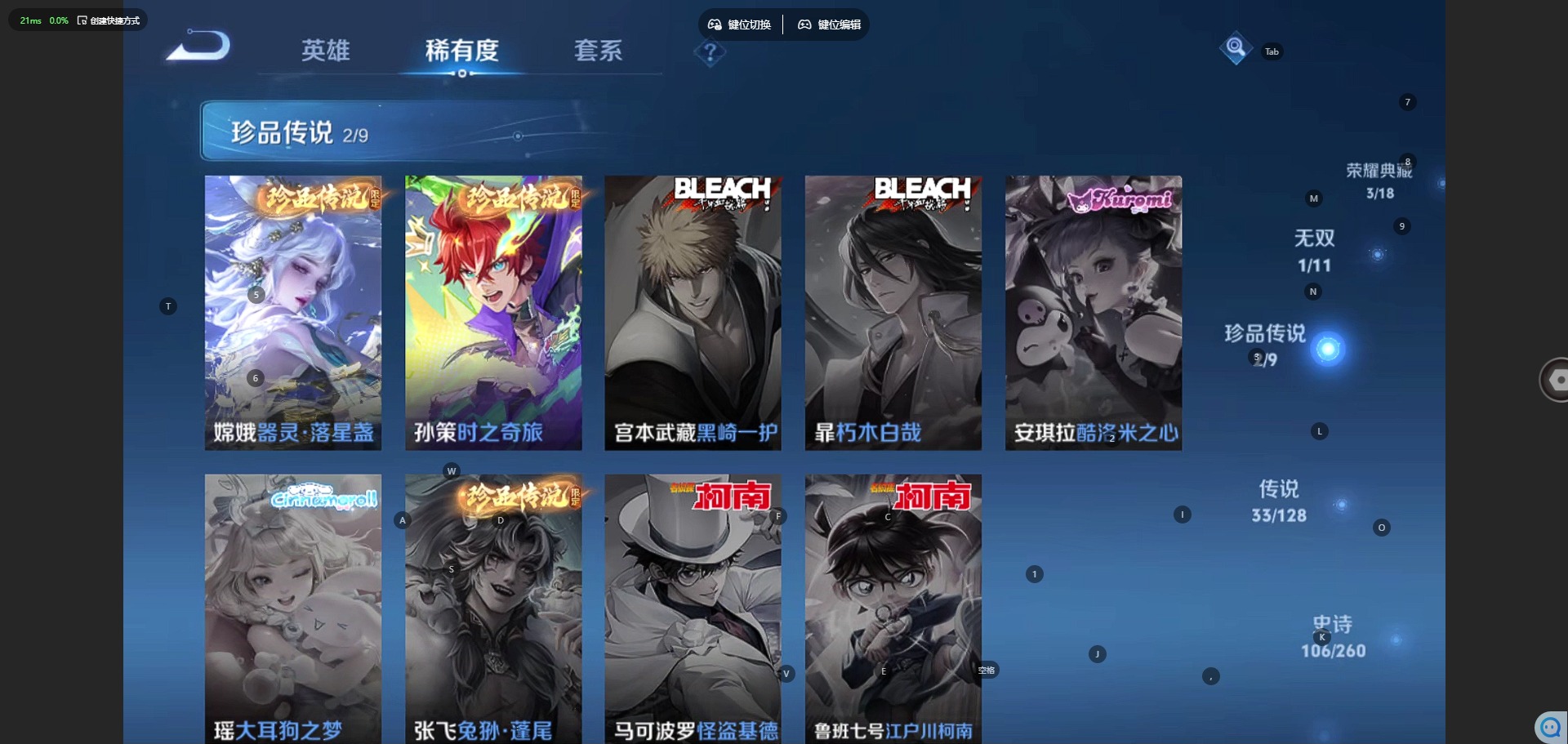 - PX_2071438-安卓QQ 514皮 贵族11级 1珍品无双 14典藏 7珍品传说 3无双 75传说 159史诗【珍品无双】馥梦繁花【荣耀典藏】最初的交响,无限飓风号,杀手不太冷,全息碎影,天鹅之梦,鸣剑·曳影,倪克斯神谕,活力突击,大秦宣太后,九霄神辉,神鉴启示录,幻阙歌,银白咏叹调,星空梦想【珍品传说】朽木白哉,器灵·落星盏,时之奇旅,酷洛米之心,大耳狗之梦,怪盗基德,江户川柯南【无双限定