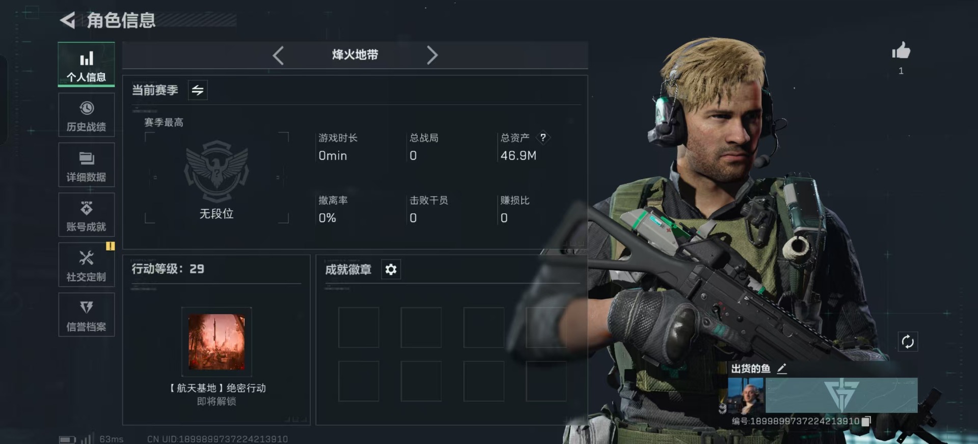 [12138477]总资产:46.9M 5传说枪械 哈夫币:45.241K 可二次 可修改实名 烽火地带段位:无段位 全面战场段位:无段位 传说武器皮肤:勇士冲锋枪-能天使-午夜邮差,腾龙突击步枪-捞点薯条,93R-捞点薯条,AWM狙击步枪-捞点薯条,M4A1突击步枪-阿米娅 史诗武器皮肤:SV-98狙击步枪-林中猎手,SV-98狙击步枪-囚徒,QJB201轻机枪-Old Habits