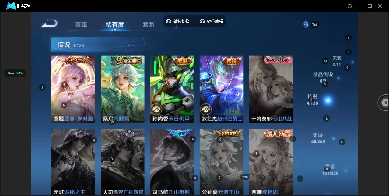 - [11296920]V8 10传说 124英雄 214皮肤 典藏英雄武则天 可修改实名 女号 优质装备:冠军飞将,久胜战神,末日机甲-孙尚香(绿蚂蚱),仲夏夜之梦(大飞蛾),零号·赤焰,海洋之心 限定皮:至尊宝,白虎志(电光耗子),梅西,魔法小厨娘,瑞麟志(木兰年限),遇见飞天,青龙志(铠年限),冰锋战神,游园惊梦,梁祝,逐梦之翼,逐梦之音,逐梦之影,逐梦之光,玄武志(苏烈年限),朱雀志(守约年限),永曜之星,辉光之辰,霸王别姬-虞姬,奇迹圣诞,一生所爱,引擎之心,天魔缭乱,青春决赛季,冰霜恋舞曲,云端筑梦师,蜜橘之夏,热情桑巴,神奇女侠,美猴王 史诗皮:东方月初,紫霞仙子,电玩小子(小书包),黄金分割率,千年之狐,偶像歌手,末日机甲-吕布,猫狗日记-孙策,猫狗日记-大乔,乱世虎臣,摇滚巨星,水果甜心,星夜王子,心灵骇客,暗隐猎兽者,纤云弄巧,繁星吟游(呼啦呼啦),缤纷独角兽,水晶猎龙者,箭羽风息,金属风暴,原初追逐者,圣诞恋歌,鹰眼统帅,魅力维加斯,未来纪元-赵云