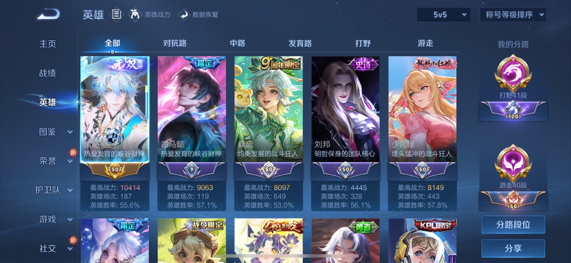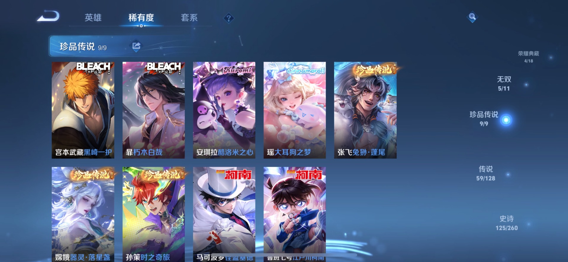 - [12265640]V5 1典藏 4传说 124英雄 120皮肤 可修改实名 优质装备:星域神启(倪克斯贼亮),久胜战神,涂山容容 传说皮:幻光神枪 珍宝阁皮:万物之道 限定皮:愿照·山河定(司空震年限),逐霄战戟,鸣野蒿 史诗皮:器灵·浮梦炉,化蝶舞,龙之律动,石田雨龙,茶境仙,百相守梦-黄忠,紫霞仙子,特工魅影,千年之狐,百解令(蒙犽),高渐离燃音魔法,蒙恬荣光圣徽,偶像歌手,女仆咖啡,摇滚巨星,水果甜心,功夫厨神,幽灵船长,鬼剑武藏,暗渊魔法,心灵战警,乐园奇幻夜,纤云弄巧,水晶猎龙者,鹰眼统帅,魅力维加斯,未来纪元-赵云
