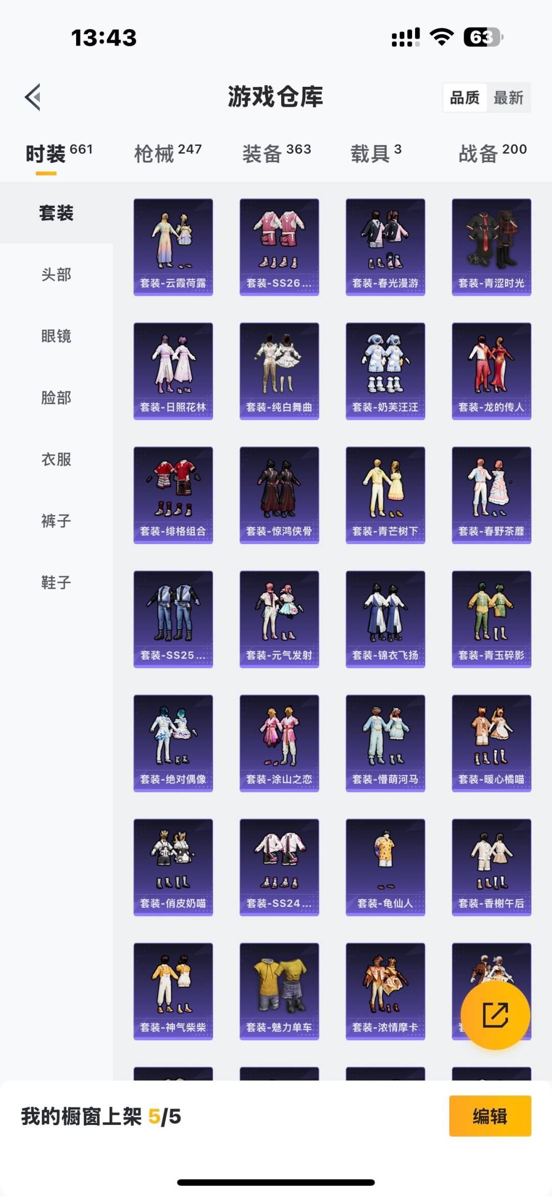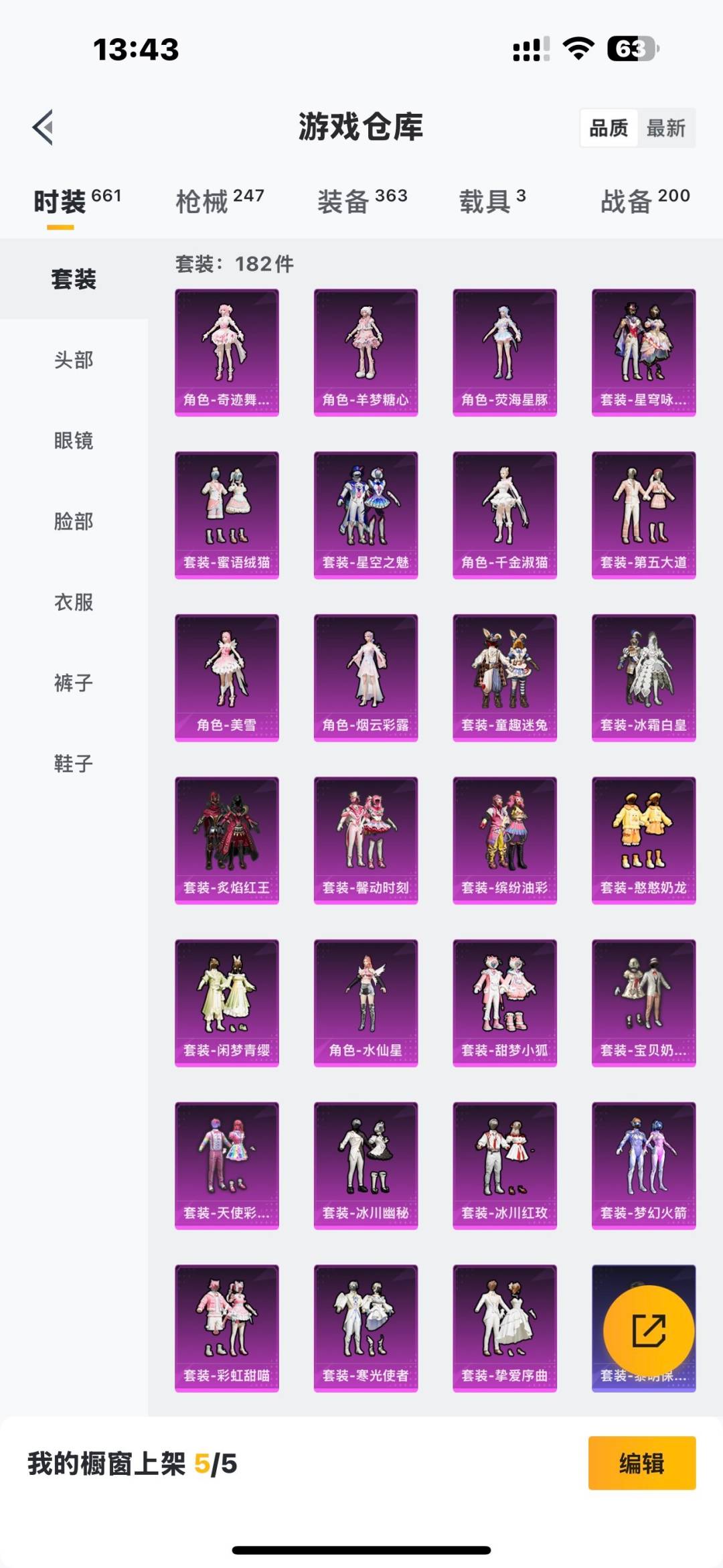 套装-派对舞王,套装-宝贝奶油派,套装-天使彩虹糖,套装-梦幻火箭,套装-缤纷油彩,套装-馨动时刻,套装-星空之魅,套装-炙焰红王,兔兔白日梦套装,套装-寒光使者,套装-甜梦小狐,套装-奶芙汪汪,套装-彩虹甜喵,套装-冰川红玫,套装-挚爱序曲,套装-闲梦青缨,角色-水仙星,套装-蜜语绒猫,套装-憨憨奶龙,角色-烟云彩露,角色-美雪,角色-千金淑猫,套装-第五大道,套装-冰川幽秘