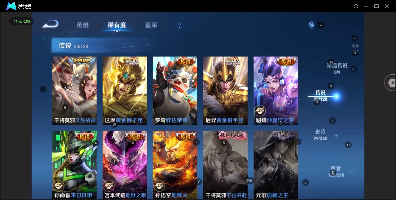 - [11853241]V9 2典藏 28传说 124英雄 341皮肤 可修改实名 优质装备:天鹅之梦(小乔典藏),全息碎影(猴子典藏),黄金狮子座,黄金射手座,猫影幻舞,一念神魔,末日机甲-孙尚香(绿蚂蚱),地狱火,零号·赤焰,李逍遥,游龙清影(小青龙),超时空战士-狄仁杰,遇见胡旋,末日机甲-孙策,挚爱之约 传说皮:幻光神枪 珍宝阁皮:优雅恋人,女武神 限定皮:愿照·众生和(妲己年限),逐霄战戟,至尊宝,白虎志(电光耗子),凤求凰(白切鸡),太华(伽罗年限),梅西,武陵仙君(小桃花),异界灵契(白毛香),寅虎·展翼(孙膑年限),白鹤梁神女,时雨天司(水龙头),神威(电光马子),飞衡(韩信年限),遇见飞天,高山流水,五谷丰年,青龙志(铠年限),冰锋战神,武圣,梁祝,天狼狩猎者,龙胆,逐梦之翼,逐梦之星,天狼绘梦者,李小龙,逐梦之影,逐梦之光,朱雀志(守约年限),永曜之星,辉光之辰,如梦令-嫦娥,如梦令-后羿,真爱至上,孙行者,猪悟能,一生所爱,大圣娶亲,引擎之心,天魔缭乱,青春决赛季,冰霜恋舞曲,匿光追影者,寅虎·御盾(廉颇年限),寅虎·瑞焰(虎皮蛋子),寅虎·心曲(虎婆),寅虎·赤拳(老虎年限),无尽星芒 史诗皮:器灵·浮梦炉,谪仙醉月,龙之律动,百相守梦-周瑜,茶境仙,撼地雄心,破空之剑,战舞者,涂山红红,东方月初,紫霞仙子,电玩小子(小书包),黄金分割率,特工魅影,千年之狐,蒙恬荣光圣徽,无限星赏官,冰冠公主,青蛇,偶像歌手,电玩·爆裂旋风,暗夜猫娘,龙骑士(小龙虾),末日机甲-吕布,猫狗日记-孙策,猫狗日记-大乔,乱世虎臣,节奏热浪,女仆咖啡,摇滚巨星,水果甜心,绅士熊喵,天才门将,星夜王子,心灵骇客,时之奇旅-安琪拉,德古拉伯爵,暗隐猎兽者,幽灵船长,鬼剑武藏,心灵战警,乐园奇幻夜,舞动绿茵,地狱岩魂,纤云弄巧,繁星吟游(呼啦呼啦),拒霜思,缤纷独角兽,乘风破浪,逐浪之夏,水晶猎龙者,曙光守护者,箭羽风息,金属风暴,原初追逐者,圣诞狂欢,圣诞恋歌,鹰眼统帅,暗夜贵公子,魅力维加斯,黎明之约,寅虎·御盾,千筹问战,无心,未来纪元-赵云