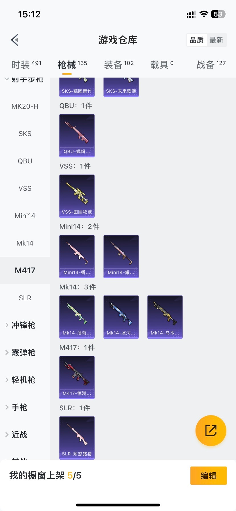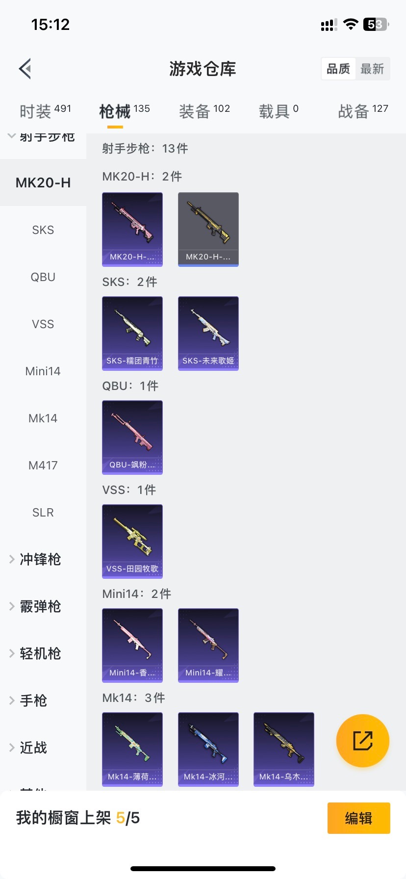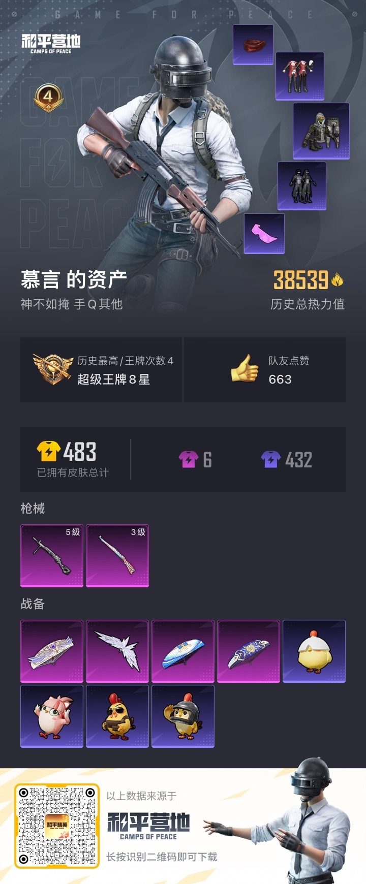 - PX_2106742- 苹果手Q-5王牌印记-13粉装-6特效枪-3载具-56366热力值-128套装-142枪皮-2卓越印记-0传奇印记 【13粉装】,梦幻火箭,缤纷油彩,放客神游,新星烈龙,傲傲奶龙,暖暖奶龙,憨憨奶龙,镜光幻境,蔷薇星,圣堂之誓,馨动时刻,星空之魅,樱桃泡泡 【6特效枪】AKM-梦之光华-4级 SCAR-L-锦绣绵绵-5级 M416-至情至圣-9级 Kar98K-巳巳如意-5