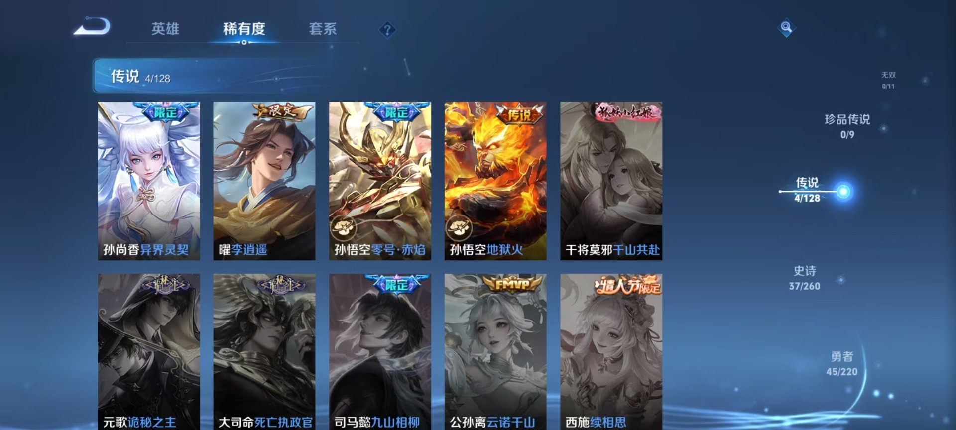 裴擒虎李小龙,上官婉儿梁祝,铠青龙志,孙悟空孙行者,孙悟空大圣娶亲,典韦岱宗,孙悟空至尊宝,孙尚香异界灵契,韩信飞衡,关羽冰锋战神