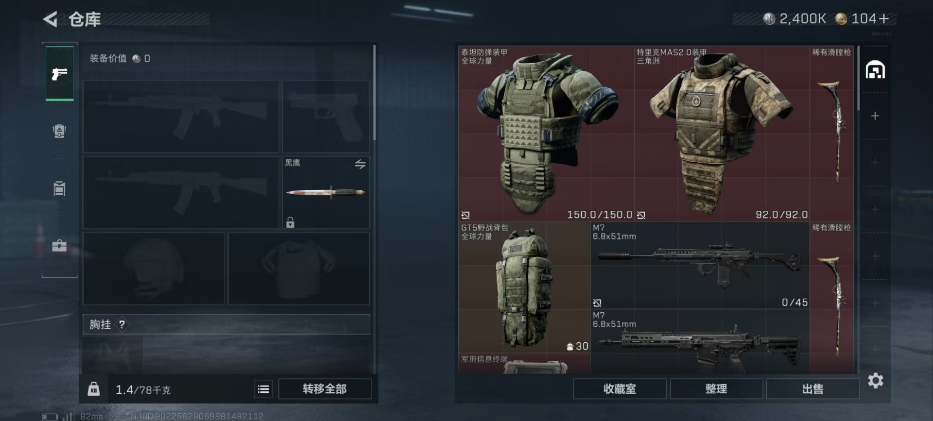 - [12294718]总资产:206.3M 1干员外观 5传说枪械 哈夫币:42.527K 顶级安全箱(3×3)9.15号到期 可二次 可修改实名 优质装备:顶级安全箱(3x3) 烽火地带段位:钻石 全面战场段位:列兵 传说武器皮肤:CAR-15突击步枪-阿米娅,复合弓-黑-天际线,勇士冲锋枪-能天使-午夜邮差,725双管霰弹枪-送葬人-无题密令,M4A1突击步枪-蚀金玫瑰 干员外观:红狼-蚀金玫瑰