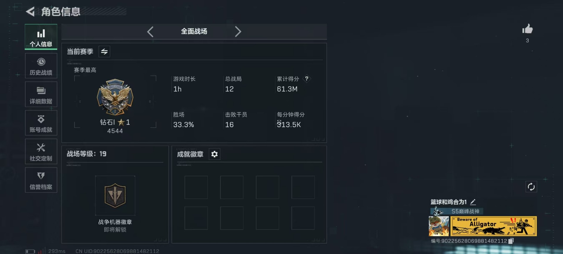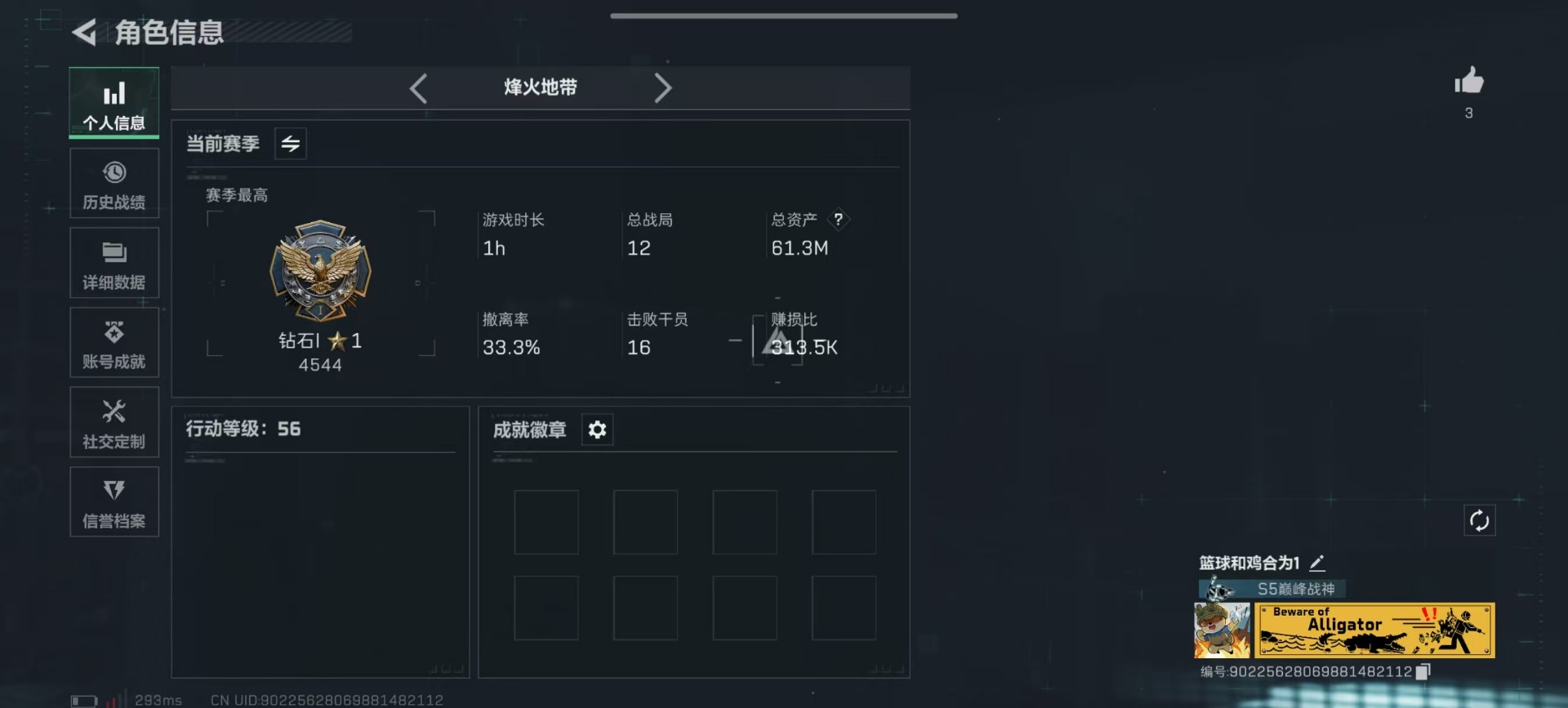 [12142627]总资产:61.3M 1传说枪械 哈夫币:2.400K 可二次 可修改实名 烽火地带段位:钻石 全面战场段位:上等兵 传说武器皮肤:M4A1突击步枪-阿米娅