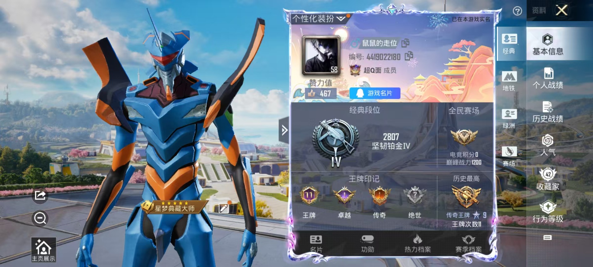 - PX_2071564-苹果QQ 历史总热力值:126435 红装数量:1 粉装数量:11 特效枪数量:15 载具数量:3 王牌印记:17 历史最高段位:无敌战神 套装数量:263 时装数量:1051 枪械数量:340 战备数量:241 装备数量:434 载具:仰望U7(阿盖尔紫),兰博基尼Aventador SVJ(翡翠绿),晶梦灵驹 时装:沙丘之主-图卡盟(5级),套装-星之彼岸,套装-碧影闪光