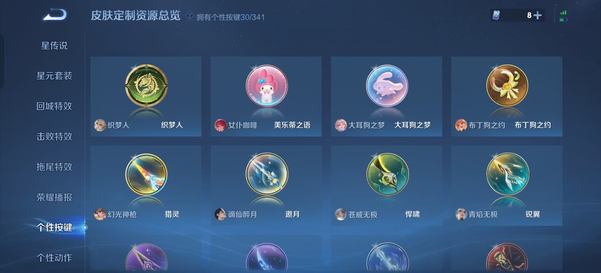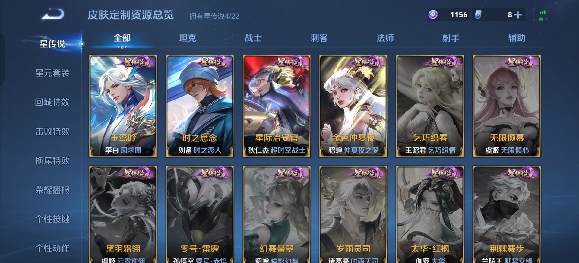 大乔猫狗日记,高渐离燃音魔法,大乔乘龙·忆丹青,海诺心动手记,刘邦德古拉伯爵,夏侯惇乘风破浪,阿轲暗夜猫娘,阿轲节奏热浪,铠曙光守护者,曹操幽灵船长,廉颇地狱岩魂,伽罗箭羽风息,伽罗琥珀纪元,小乔缤纷独角兽,孙尚香时之恋人,孙策猫狗日记,不知火舞魅语,海月浮梦罗烟,赵怀真器灵·浮梦炉,鲁班七号电玩小子,项羽苍穹之光,吕布圣诞狂欢,吕布末日机甲,露娜紫霞仙子,诸葛亮黄金分割率,刘禅电玩·爆裂旋风,司马懿暗渊魔法,刘禅天才门将,刘禅绅士熊喵,宫本武藏鬼剑武藏,公孙离无限星赏官,兰陵王暗隐猎兽者,貂蝉圣诞恋歌,貂蝉唤灵魅影,李白谪仙醉月,花木兰水晶猎龙者,李白千年之狐,安琪拉心灵骇客,安琪拉乘龙·聚宝船,蒙犽百解令,艾琳奇遇舞章,杨戬天秀·启明,西施诗语江南,白起星夜王子,亚瑟心灵战警,嬴政摇滚巨星,嬴政暗夜贵公子,程咬金功夫厨神,百里玄策热力回旋,百里玄策原初追逐者,雅典娜冰冠公主,雅典娜黎明之约,韩信白龙吟,李元芳匿光侦查者,李元芳逐浪之夏,百里守约特工魅影,墨子龙骑士,墨子金属风暴,蔡文姬舞动绿茵,瑶遇见神鹿,蔡文姬电玩·兔顽号,澜赏金猎手,娜可露露晚萤,王昭君偶像歌手,嫦娥拒霜思,钟馗乐园奇幻夜,橘右京修罗