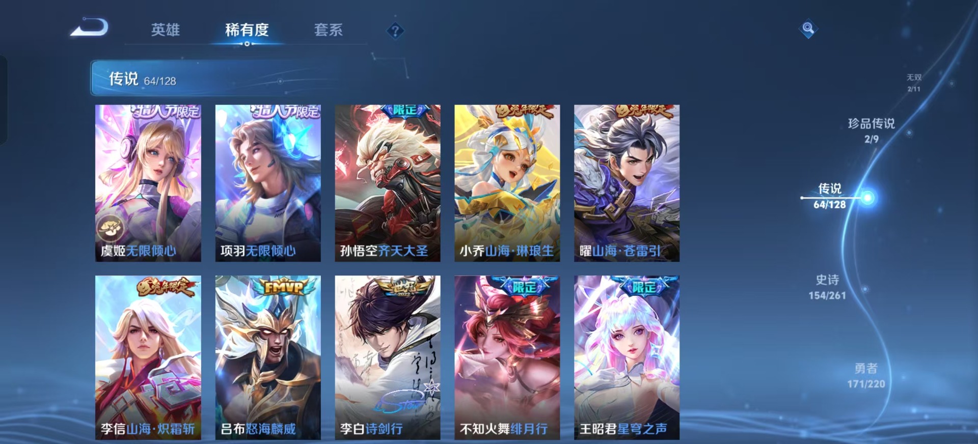 - [11432658]V8 2典藏 6传说 125英雄 247皮肤 典藏英雄武则天 可修改实名 优质装备:星空梦想(太空人),全息碎影(猴子典藏),黄金狮子座,冠军飞将,零号·赤焰,海洋之心 珍宝阁皮:胡桃夹子 限定皮:至尊宝,凤求凰(白切鸡),神威(电光马子),遇见飞天,梁祝,李小龙,逐梦之光,一生所爱,大圣娶亲 史诗皮:百相守梦-黄忠,苍穹之光,电玩小子(小书包),白龙吟,黄金分割率,特工魅影,千年之狐,偶像歌手,魅语,冰冠公主,猫狗日记-孙策,乱世虎臣,节奏热浪,修罗,女仆咖啡,摇滚巨星,天才门将,星夜王子,心灵骇客,功夫厨神,德古拉伯爵,暗隐猎兽者,幽灵船长,鬼剑武藏,心灵战警,纤云弄巧,乘风破浪,逐浪之夏,水晶猎龙者,曙光守护者,原初追逐者,圣诞狂欢,圣诞恋歌,鹰眼统帅,魅力维加斯,黎明之约,未来纪元-赵云