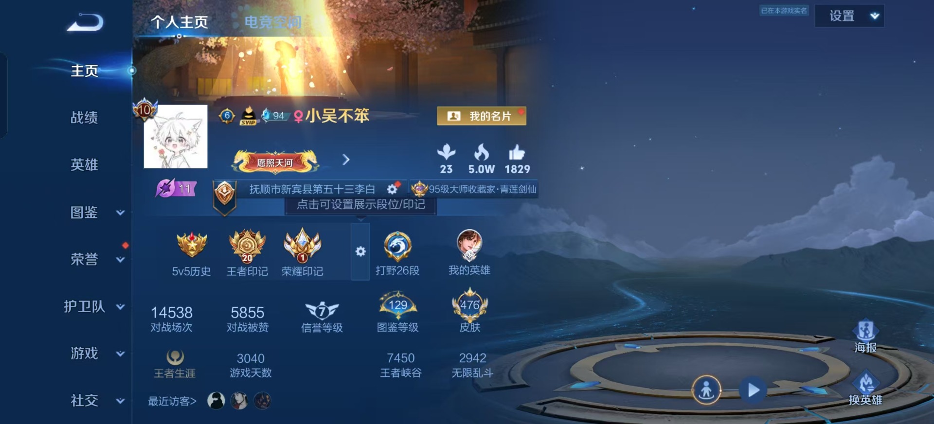 [12143017]V10 3典藏 2无双 2珍品传说 64传说 125英雄 476皮肤 可修改实名 优质装备:鸣剑·曳影,幻阙歌(貂蝉典藏),碎月剑心(李白无双),韩信群星魔术团(韩信无双),拾光映像(瑶典藏),怪盗基德,黄金狮子座,黄金射手座,冠军飞将,云鹰飞将(小将军),绛天战甲(鸡嘴战神),猫影幻舞,久胜战神,炽阳神光,一念神魔,云霓雀翎,末日机甲-孙尚香(绿蚂蚱),地狱火,仲夏夜之梦(大飞蛾),零号·赤焰,地狱之眼,胖达荣荣,时之恋人-刘备(电焊工),游龙清影(小青龙),淬星耀世,超时空战士-狄仁杰,遇见胡旋,末日机甲-孙策,无双飞将,音你闪耀(rap皮),碎云,山海·炽霜斩(李信年限),山海·琳琅生(小乔年限),山海·苍雷引(电光曜子),燃星之曲,浮生妄,记忆之芯(机甲兔),电玩·雷克斯,霜月吟,澜逐花归海,艾琳觅芳踪,朵莉亚心动手记,涂山容容 珍品传说:兔狲·蓬尾 传说皮:乘龙·问璇玑(孙尚香年限),乘龙·铭钟鼎(赵云年限),乘龙·淬吴钩(孙策年限),云诺千山,幻光神枪 珍宝阁皮:妄想食味,蔷薇恋人,女武神 限定皮:愿照·九州拓(澜年限),愿照·福禄聚(蔡文姬年限),愿照·岁时盈(虞姬年限),愿照·山河定(司空震年限),愿照·众生和(妲己年限),愿照·千秋盛(女娲年限),鸣野蒿,至尊宝,凤求凰(白切鸡),武陵仙君(小桃花),异界灵契(白毛香),傲雪梅枪,寅虎·展翼(孙膑年限),星穹之声,绯月行,白晶晶,时雨天司(水龙头),神威(电光马子),飞衡(韩信年限),山海·碧波行(瑶年限),无限倾心-项羽,遇见飞天,高山流水,诗剑行,无限倾心-虞姬,齐天大圣,怒海麟威,五谷丰年,青龙志(铠年限),冰锋战神,天狼运算者,游园惊梦,梁祝,御风骁将(吕布年限),天狼狩猎者,天狼溯光者,祈雪灵祝(雪兔子),天狼绘梦者,李小龙,逐梦之影,如梦令-嫦娥,如梦令-后羿,圣诞老人,孙行者,一生所爱,大圣娶亲,青春决赛季,乒乒小将,蜜橘之夏,神奇女侠,匿光追影者,寅虎·御盾(廉颇年限),寅虎·瑞焰(虎皮蛋子),寅虎·心曲(虎婆),寅虎·赤拳(老虎年限),时之祈愿-瑶(瑶传限),玉兔公主,山海·玄木吟(马可年限) 史诗皮:器灵·浮梦炉,化蝶舞,灵蛊蚀心,星界战将,谪仙醉月,龙之律动,石田雨龙,茶境仙,破空之剑,海诺心动手记,琥珀纪元伽罗,蔬乡物语(鲁班七号),超元猎域,乘龙·聚宝船(安琪拉年限),