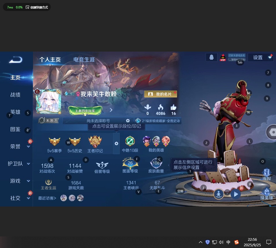 [12144053]V6 7传说 116英雄 108皮肤 可修改实名 优质装备:云鹰飞将(小将军),久胜战神,乞巧织情,游龙清影(小青龙),无双飞将 传说皮:幻光神枪 珍宝阁皮:胡桃夹子 限定皮:愿照·山河定(司空震年限),逐霄战戟,傲雪梅枪,白晶晶,李小龙,默契交锋-花木兰,玉兔公主,山海·玄木吟(马可年限) 史诗皮:器灵·浮梦炉,龙之律动,织梦人,电玩小子(小书包),千年之狐,真我赫兹(镜),江河有灵,魅语,偶像歌手,女仆咖啡,水果甜心,舞动绿茵,地狱岩魂,缤纷独角兽,乘风破浪,逐浪之夏,圣诞恋歌,鹰眼统帅,魅力维加斯