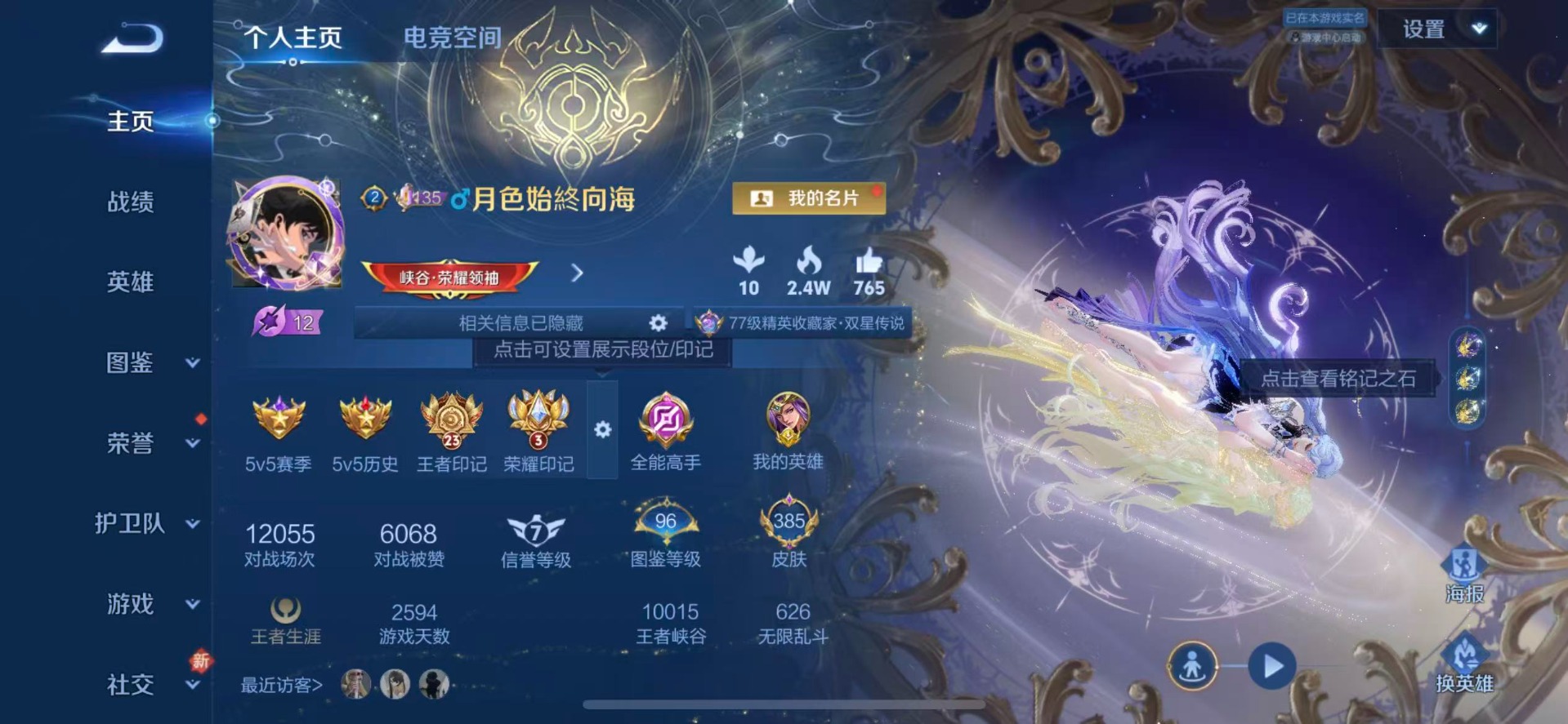 - PX_2095793-实名: 可修改 贵族等级: V3 英雄数: 90 皮肤数: 75 传说皮: 久胜战神,幻光神枪 限定皮: 鸣野蒿,愿照·岁时盈