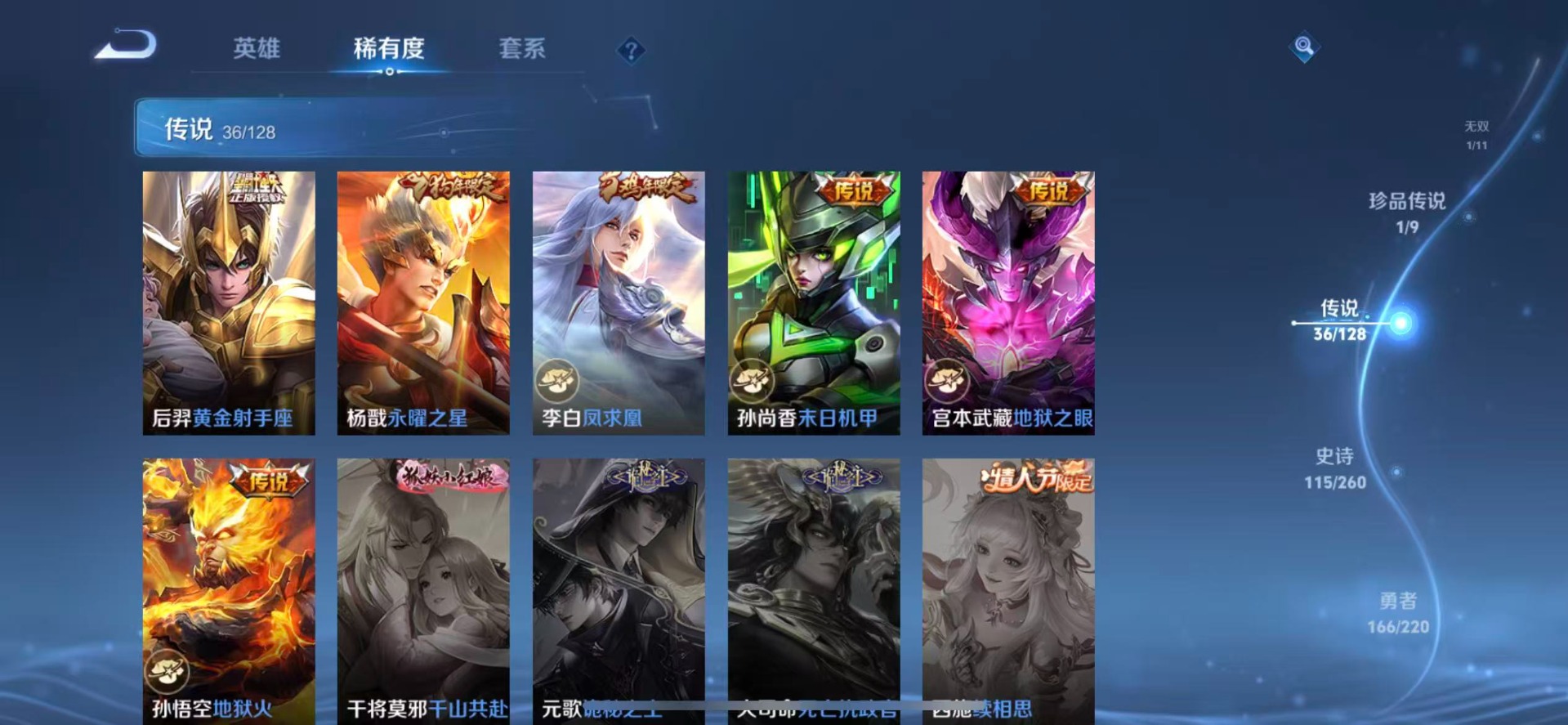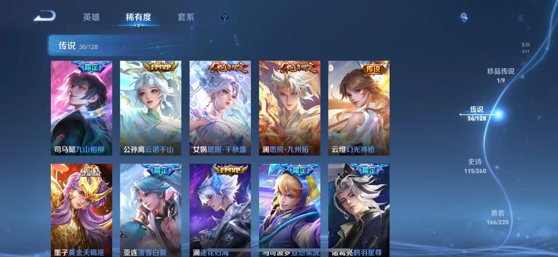 - [12258839]V7 1无双 12传说 121英雄 136皮肤 可修改实名 优质装备:器灵·螭龙剑,黄金狮子座,浮生妄,电玩·雷克斯 传说皮:云诺千山,幻光神枪 珍宝阁皮:妄想食味,玩趣恶龙 限定皮:愿照·九州拓(澜年限),愿照·福禄聚(蔡文姬年限),愿照·岁时盈(虞姬年限),愿照·山河定(司空震年限),愿照·众生和(妲己年限),愿照·千秋盛(女娲年限),鸣野蒿,五谷丰年 史诗皮:器灵·浮梦炉,绮世丹青,化蝶舞,龙之律动,星界特工,特工魅影,末日机甲-吕布,猫狗日记-大乔,摇滚巨星,水果甜心,星夜王子,德古拉伯爵,幽灵船长,鬼剑武藏,地狱岩魂,乘风破浪,水晶猎龙者,原初追逐者,圣诞恋歌,鹰眼统帅
