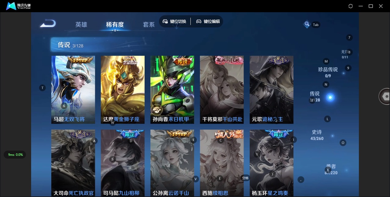 - [11443701]V9 1典藏 18传说 124英雄 280皮肤 可修改实名 优质装备:银白咏叹调(倪克斯侍卫),黄金狮子座,黄金射手座,冠军飞将,炽阳神光,一念神魔,云霓雀翎,地狱之眼,音你心动-周瑜,胖达荣荣,乞巧织情,时之恋人-刘备(电焊工),淬星耀世,山海·炽霜斩(李信年限) 珍宝阁皮:蔷薇恋人 限定皮:愿照·九州拓(澜年限),至尊宝,傲雪梅枪,无限倾心-项羽,齐天大圣,李小龙,朱雀志(守约年限),默契交锋-兰陵王,山海·玄木吟(马可年限) 史诗皮:器灵·浮梦炉,化蝶舞,蔬乡物语(鲁班七号),乘龙·聚宝船(安琪拉年限),百相守梦-黄忠,紫霞仙子,苍穹之光,电玩小子(小书包),白龙吟,黄金分割率,特工魅影,千年之狐,江河有灵,匿光侦查者,魅语,无限星赏官,冰冠公主,青蛇,偶像歌手,白蛇,晚萤,电玩·爆裂旋风,暗夜猫娘,龙骑士(小龙虾),末日机甲-吕布,猫狗日记-孙策,猫狗日记-大乔,时之恋人-孙尚香,乱世虎臣,节奏热浪,修罗,女仆咖啡,摇滚巨星,水果甜心,绅士熊喵,天才门将,星夜王子,心灵骇客,功夫厨神,德古拉伯爵,暗隐猎兽者,幽灵船长,鬼剑武藏,心灵战警,天秀·启明,舞动绿茵,地狱岩魂,诗语江南,繁星吟游(呼啦呼啦),缤纷独角兽,乘风破浪,逐浪之夏,龙鼓争鸣,水晶猎龙者,曙光守护者,热力回旋,箭羽风息,金属风暴,圣诞狂欢,圣诞恋歌,鹰眼统帅,暗夜贵公子,魅力维加斯,赏金猎手,未来纪元-赵云