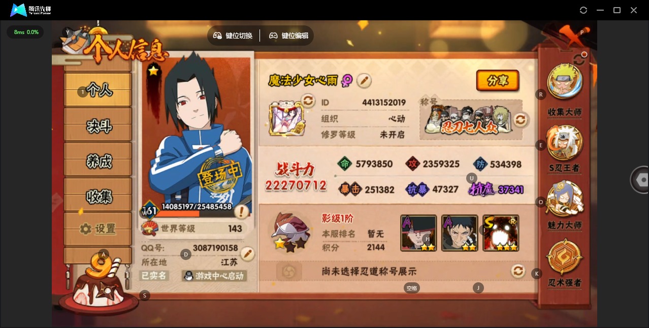 - 火影忍者手游/QQ/安卓QQ1-100区/1区宇智波佐助