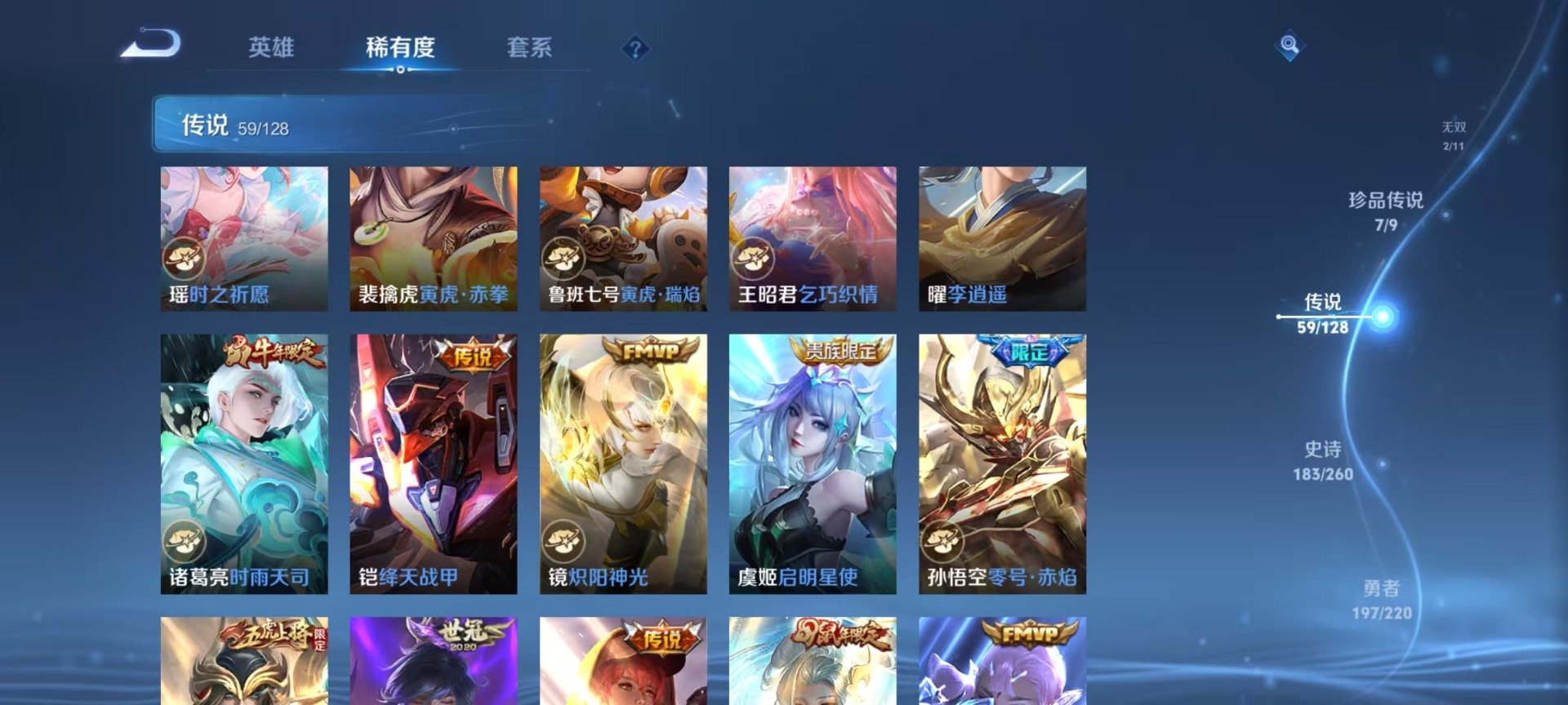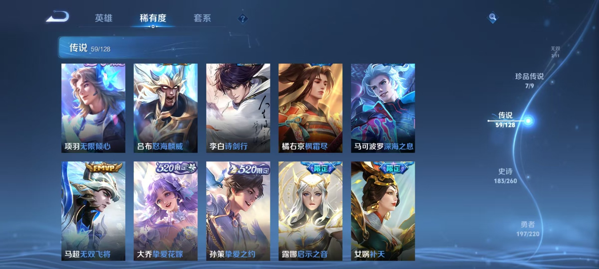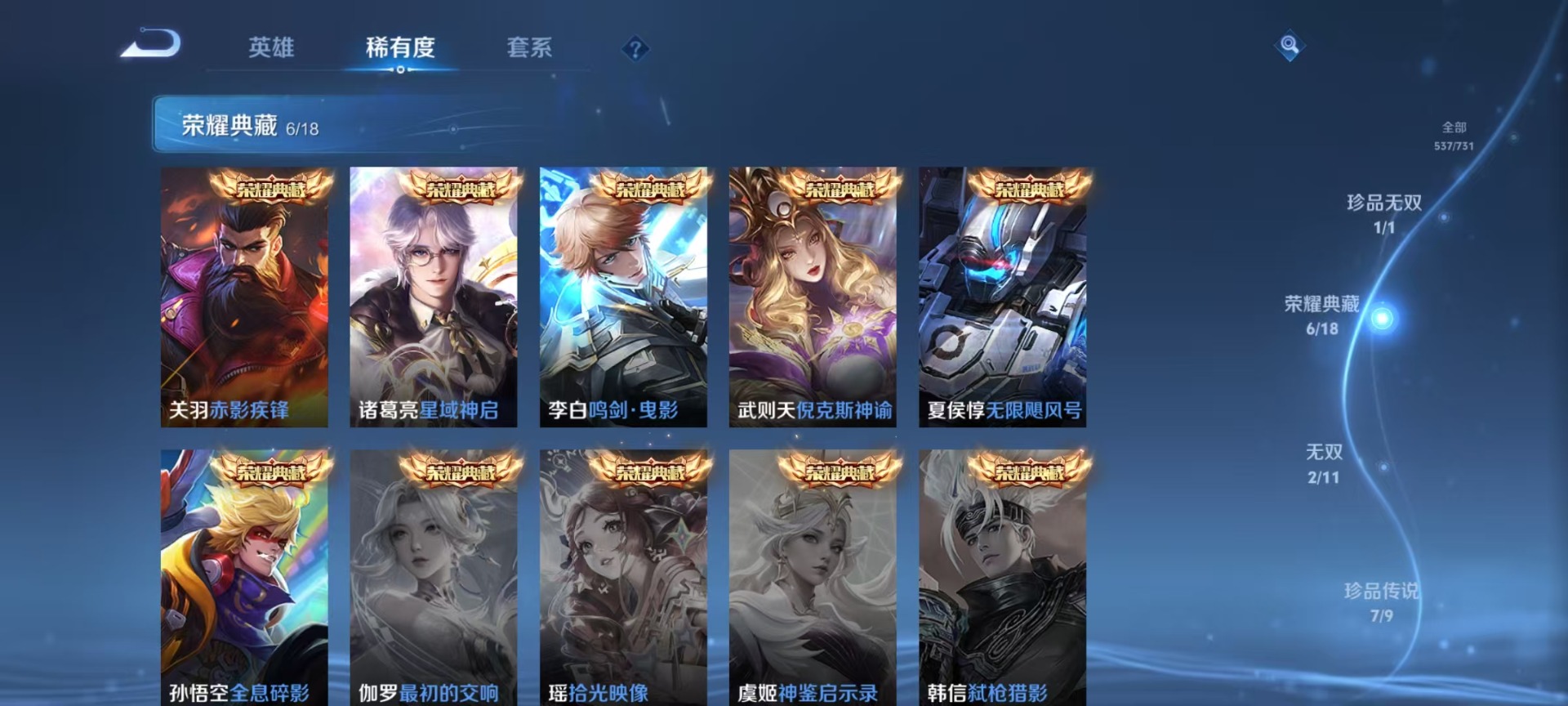 [12145063]无双贵族 6典藏 1珍品无双 2无双 7珍品传说 59传说 126英雄 537皮肤 典藏英雄武则天 女号