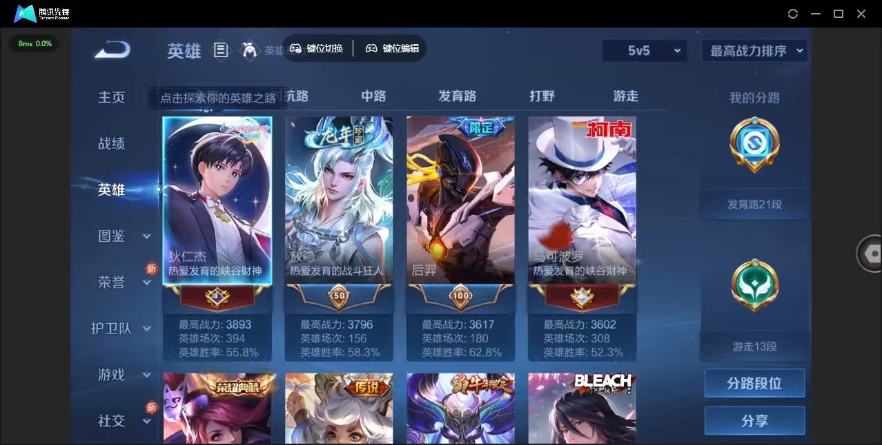 - PX_2078933-【金标莱西奥】实名: 可修改 贵族等级: V5 英雄数: 103 皮肤数: 91 珍品传说: 怪盗基德 传说皮: 胖达荣荣,幻光神枪 限定皮: 鸣野蒿,愿照·九州拓