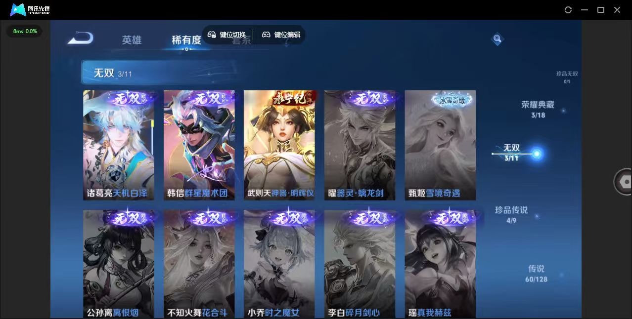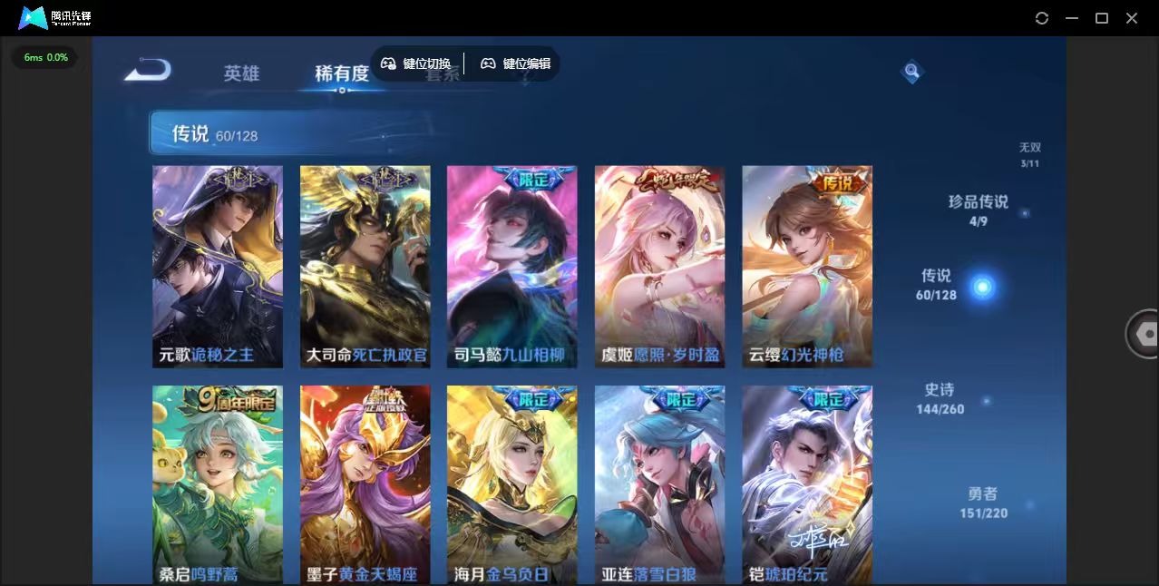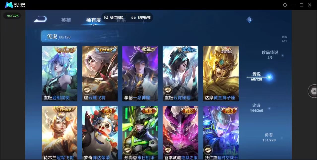 - [11688911]V9 3典藏 21传说 125英雄 351皮肤 可修改实名 优质装备:星空梦想(太空人),鸣剑·曳影,九霄神辉(木兰典藏),黄金射手座,绛天战甲(鸡嘴战神),猫影幻舞,炽阳神光,一念神魔,云霓雀翎,末日机甲-孙尚香(绿蚂蚱),仲夏夜之梦(大飞蛾),地狱之眼,胖达荣荣,超时空战士-狄仁杰,无双飞将 传说皮:典韦战鼓燎原,幻光神枪 珍宝阁皮:万物之道,优雅恋人,女武神 限定皮:愿照·九州拓(澜年限),愿照·山河定(司空震年限),愿照·千秋盛(女娲年限),至尊宝,凤求凰(白切鸡),傲雪梅枪,时雨天司(水龙头),神威(电光马子),飞衡(韩信年限),瑞麟志(木兰年限),高山流水,匿光决锋者,五谷丰年,冰锋战神,梁祝,逐梦之音,李小龙,如梦令-后羿,默契交锋-花木兰,青春决赛季,冰霜恋舞曲,匿光追影者,启示之音 史诗皮:赞萌露比,器灵·浮梦炉,狼魂孤将,化蝶舞,灵蛊蚀心,星界战将,龙之律动,石田雨龙,百相守梦-周瑜,戍鼓铭心,幻珠鲛人,百相守梦-黄忠,织梦人,守夜人,紫霞仙子,苍穹之光,电玩小子(小书包),白龙吟,黄金分割率,特工魅影,千年之狐,永昼,匿光侦查者,魅语,百解令(蒙犽),蒙恬荣光圣徽,无限星赏官,冰冠公主,偶像歌手,晚萤,电玩·爆裂旋风,龙骑士(小龙虾),末日机甲-吕布,猫狗日记-孙策,猫狗日记-大乔,乱世虎臣,节奏热浪,修罗,女仆咖啡,摇滚巨星,水果甜心,绅士熊喵,天才门将,星夜王子,心灵骇客,功夫厨神,德古拉伯爵,暗隐猎兽者,幽灵船长,鬼剑武藏,心灵战警,舞动绿茵,地狱岩魂,诗语江南,纤云弄巧,拒霜思,缤纷独角兽,乘风破浪,逐浪之夏,水晶猎龙者,曙光守护者,热力回旋,箭羽风息,金属风暴,原初追逐者,圣诞狂欢,圣诞恋歌,鹰眼统帅,暗夜贵公子,魅力维加斯,黎明之约,赏金猎手,千筹问战,无心,未来纪元-赵云