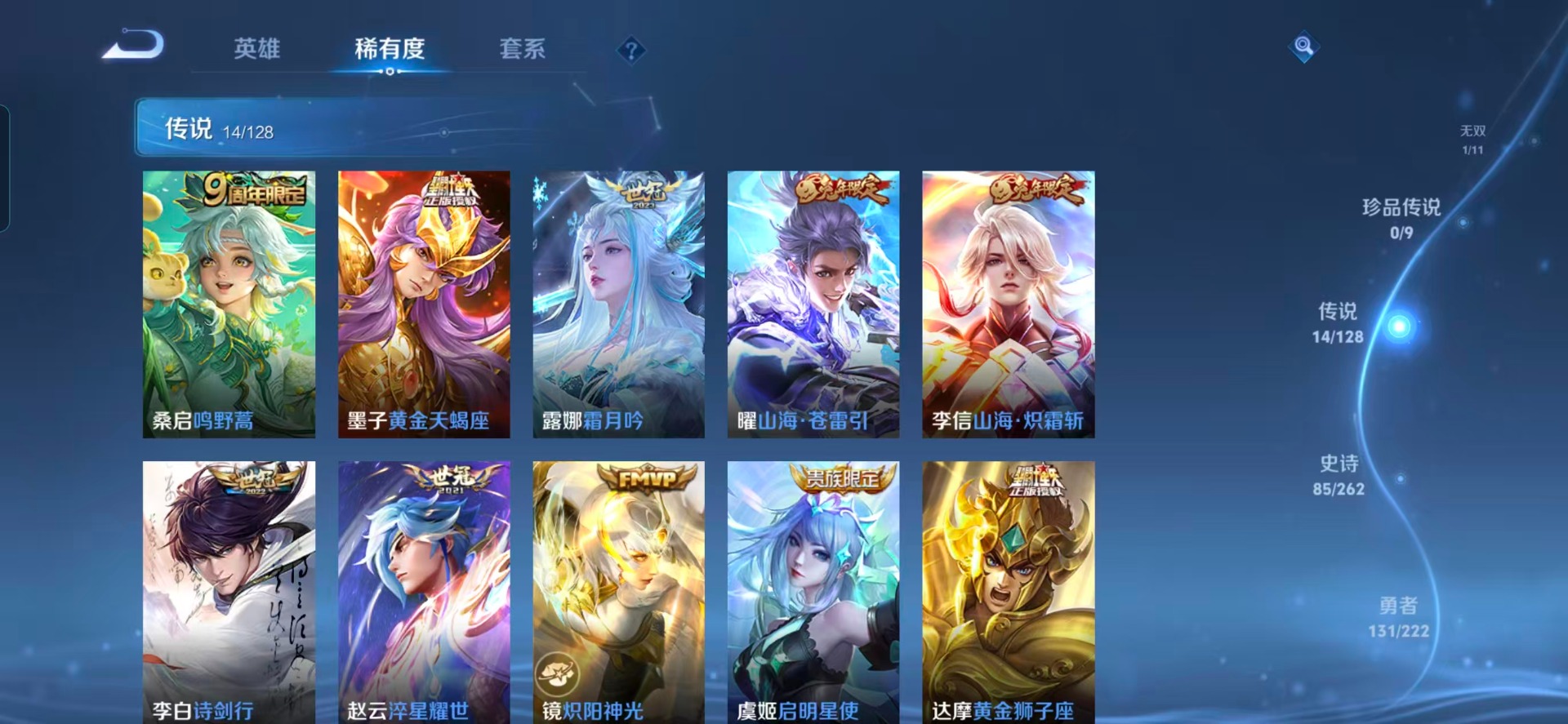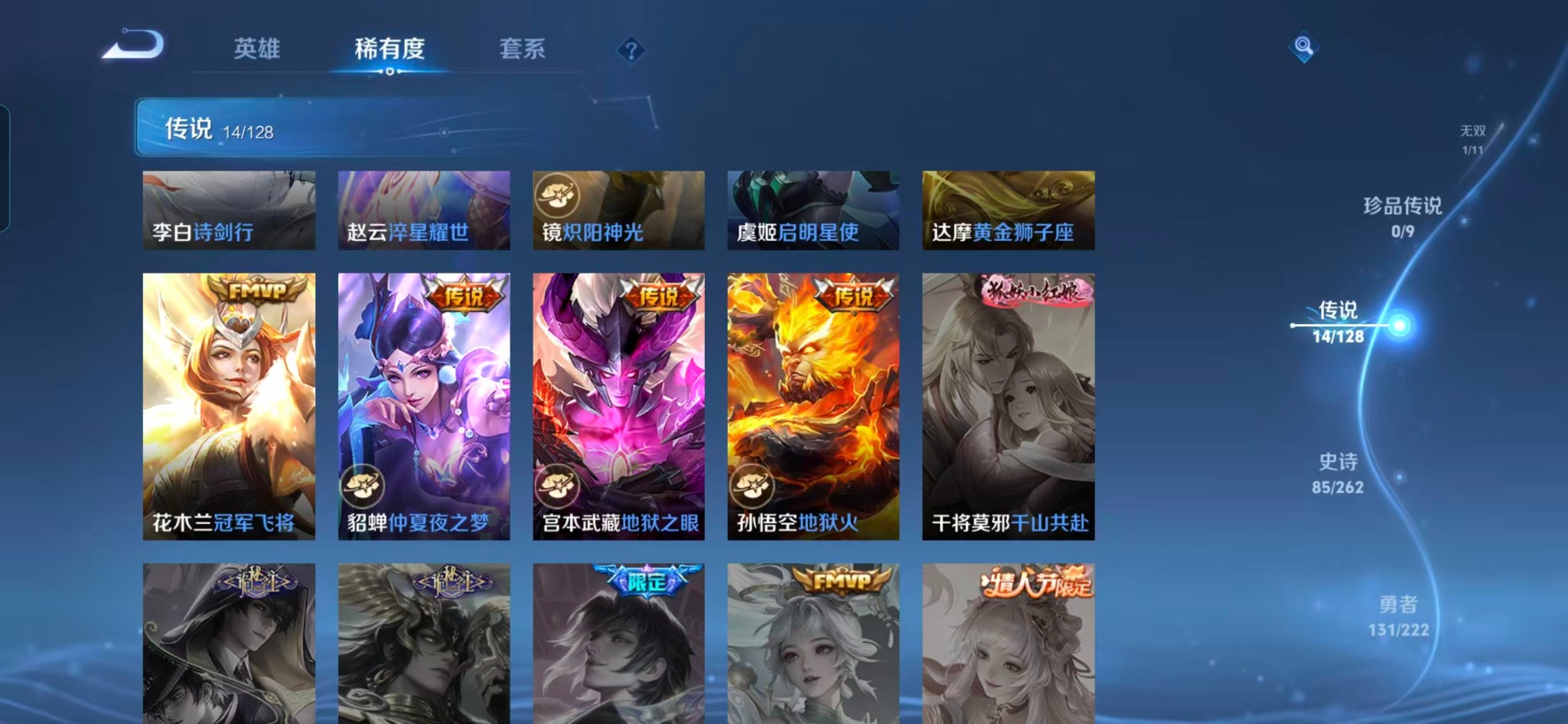 干将莫邪冰霜恋舞曲,镜匿光追影者,裴擒虎李小龙,上官婉儿梁祝,李白诗剑行,桑启鸣野蒿,孙悟空孙行者,马超神威,赵云引擎之心,百里守约朱雀志