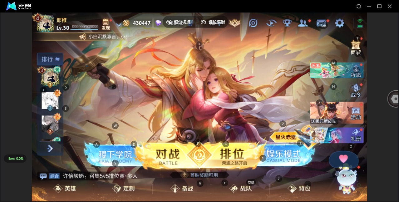- [11251323]V8 1典藏 11传说 125英雄 271皮肤 可修改实名 优质装备:弑枪猎影(韩信典藏),黄金射手座,冠军飞将,末日机甲-孙尚香(绿蚂蚱),地狱火,地狱之眼,李逍遥,无双飞将 珍宝阁皮:优雅恋人,女武神 限定皮:愿照·山河定(司空震年限),鸣野蒿,前尘镜,飞衡(韩信年限),五谷丰年,梁祝,天狼征服者,李小龙,百木心枪,山海·玄木吟(马可年限) 史诗皮:鸭鸭历险记-刘禅,器灵·浮梦炉,化蝶舞,星界战将,龙之律动,茶境仙,东方月初,蔬乡物语(鲁班七号),百相守梦-百里守约,百相守梦-黄忠,紫霞仙子,白龙吟,特工魅影,千年之狐,永昼,江河有灵,高渐离燃音魔法,蒙恬荣光圣徽,偶像歌手,魅语,晚萤,末日机甲-吕布,猫狗日记-孙策,乱世虎臣,女仆咖啡,水果甜心,绅士熊喵,心灵骇客,功夫厨神,德古拉伯爵,暗隐猎兽者,幽灵船长,鬼剑武藏,暗渊魔法,心灵战警,缤纷独角兽,乘风破浪,逐浪之夏,水晶猎龙者,曙光守护者,热力回旋,箭羽风息,金属风暴,原初追逐者,鹰眼统帅,暗夜贵公子,魅力维加斯,黎明之约,赏金猎手,无心