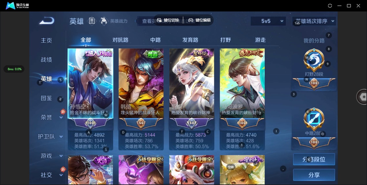 - PX_2095786-实名: 可修改 贵族等级: V5 英雄数: 93 皮肤数: 87 限定皮: 遇见飞天,梁祝,至尊宝