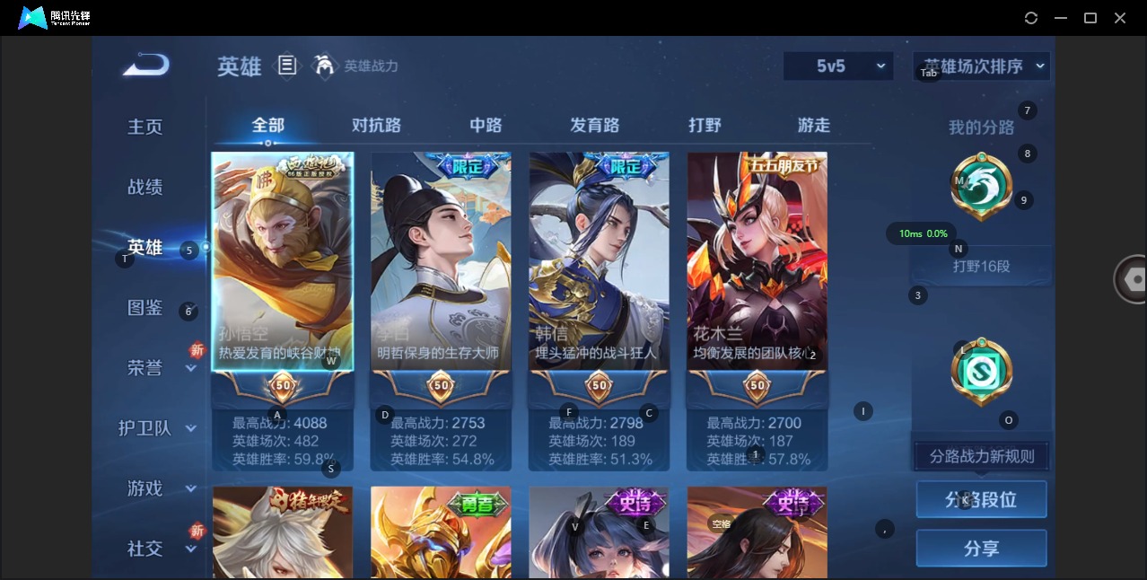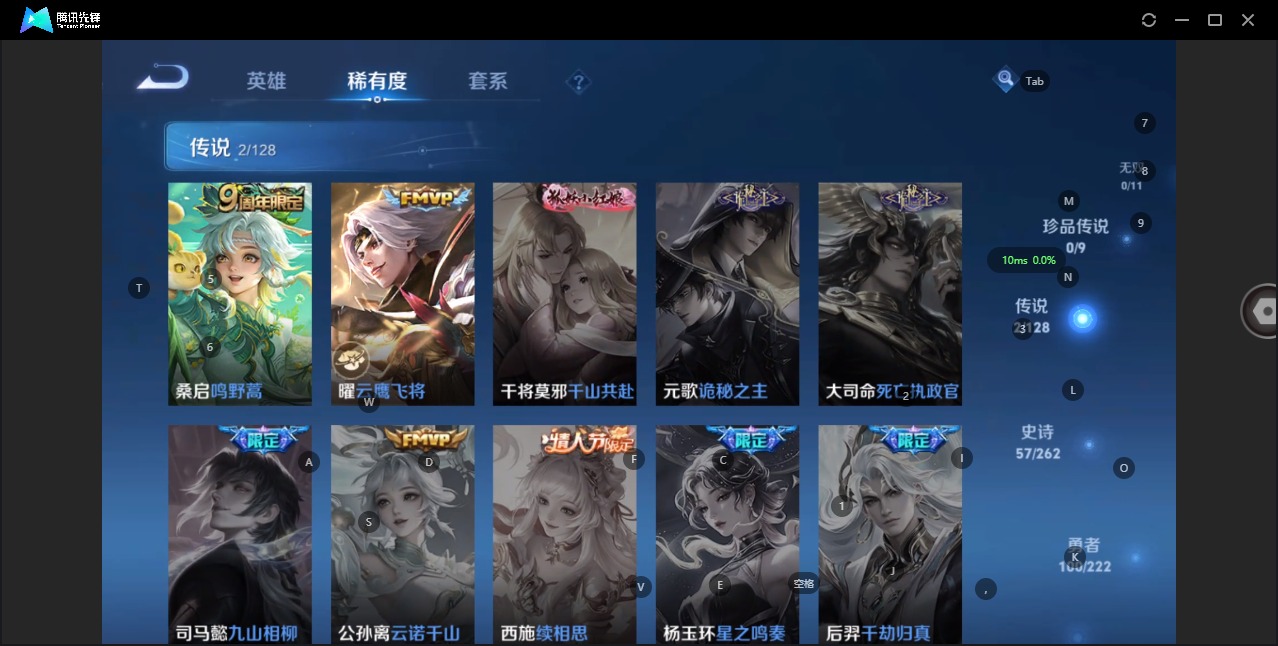 - PX_2093185-57 安卓QQ/至尊星耀/342皮肤/126英雄/1典藏/0珍品无双/0无双/0珍品传说/33传说/104史诗/10稀有英雄 【1 典藏皮肤】弑枪猎影 韩信, 【33 传说皮肤】鹤归松栖 云缨,启明星使 虞姬,电玩·雷克斯 澜,白虎志 百里玄策,李逍遥 曜,齐天大圣 孙悟空,凤求凰 李白,诗剑行 李白,仲夏夜之梦 貂蝉,惊梅引 宫本武藏,祈雪灵祝 公孙离,鹤羽星尊 诸葛亮,