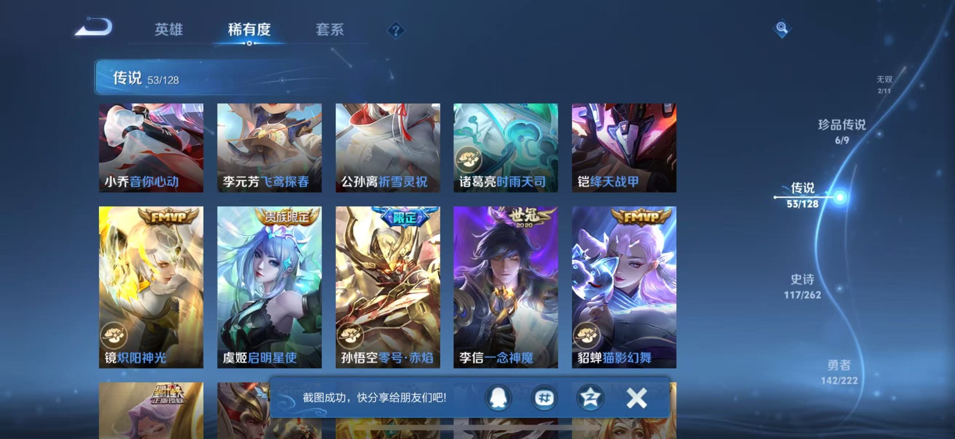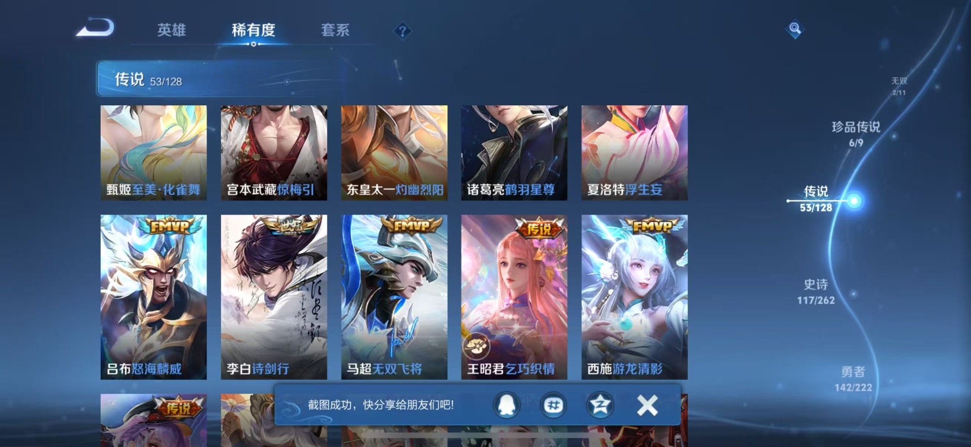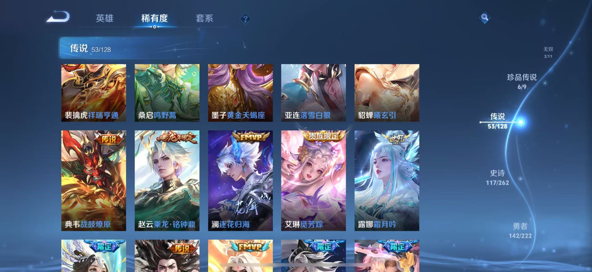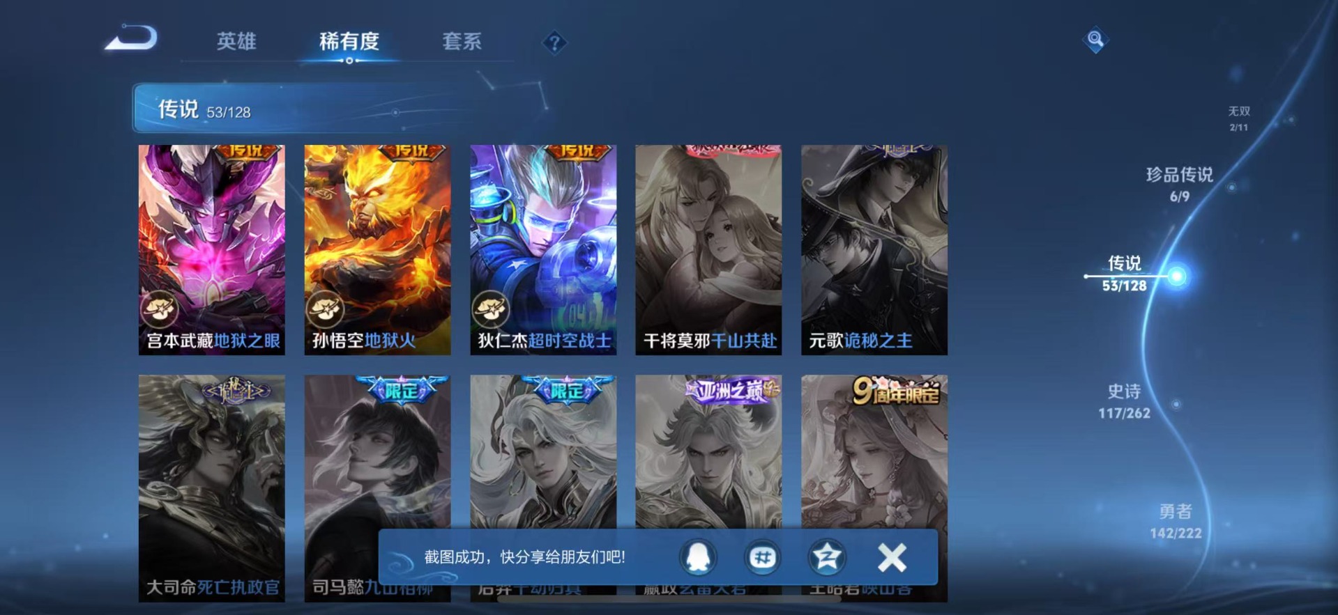 - [11492022]V4 1典藏 2传说 123英雄 187皮肤 可修改实名 优质装备:弑枪猎影(韩信典藏),黄金白羊座 珍宝阁皮:胡桃夹子,蔷薇恋人 限定皮:鸣野蒿,五谷丰年,李小龙 史诗皮:化蝶舞,星界战将,谪仙醉月,破空之剑,蔬乡物语(鲁班七号),百相守梦-黄忠,织梦人,紫霞仙子,特工魅影,江河有灵,百解令(蒙犽),蒙恬荣光圣徽,末日机甲-吕布,猫狗日记-孙策,乱世虎臣,女仆咖啡,摇滚巨星,水果甜心,绅士熊喵,星夜王子,功夫厨神,德古拉伯爵,暗隐猎兽者,鬼剑武藏,舞动绿茵,纤云弄巧,繁星吟游(呼啦呼啦),拒霜思,缤纷独角兽,逐浪之夏,曙光守护者,箭羽风息,金属风暴,圣诞狂欢,未来纪元-赵云