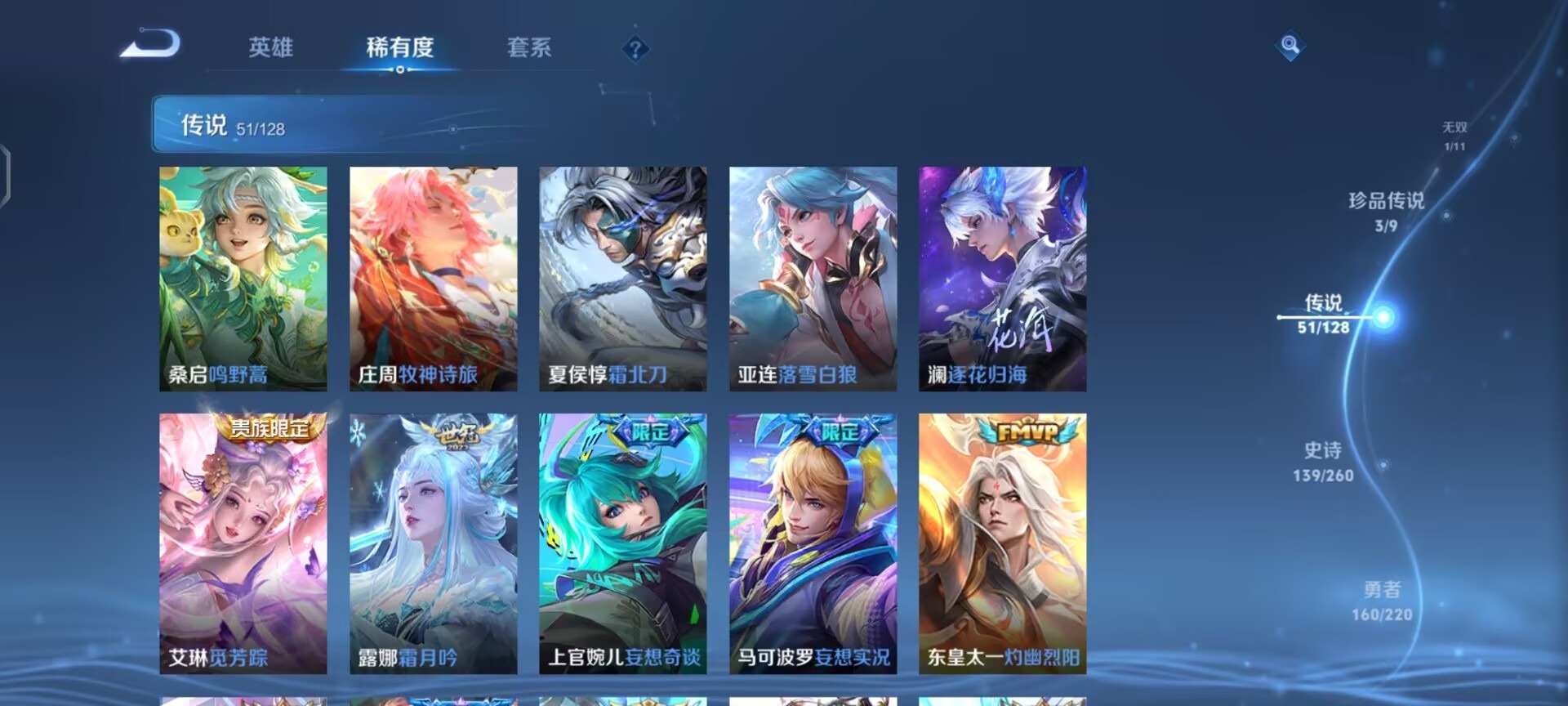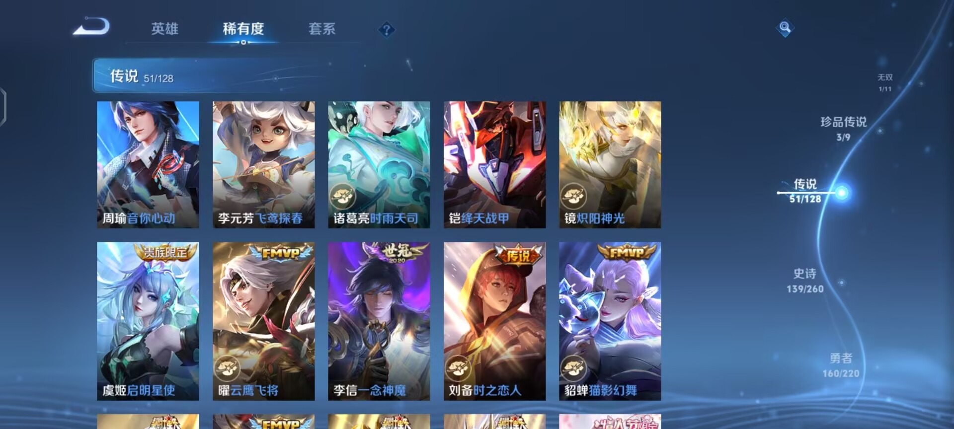 - PX_2090145-贵族6/皮肤203/传说4/史诗62/英雄123/蔷薇恋人/特工战影/地狱之眼/桑启鸣野蒿/云缨幻光神枪/虞姬愿照岁时盈/蒙犽顽岩魄/蔡文姬夏日便利店/大乔绒语心约/虞姬夏日便利店/姜子牙天穹之誓/杨戬破阵退雄兵/狄仁杰阴阳师/赵云皇家上将/蔷薇恋人/庄周高山流水/元歌无心/狄仁杰魔术师/沙漠行僧/项羽海滩派对/金庭之子/云中旅人/朔望之晖/黎明之约/鬼谷子五谷丰年/千军破阵