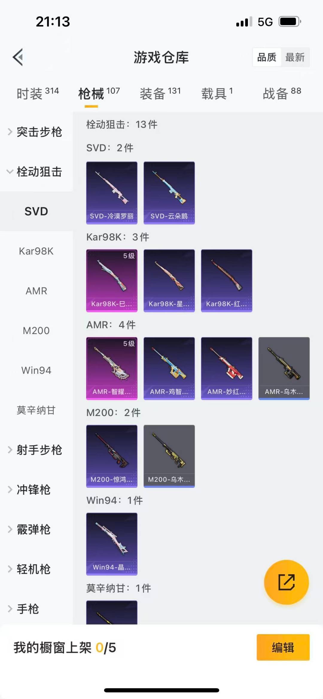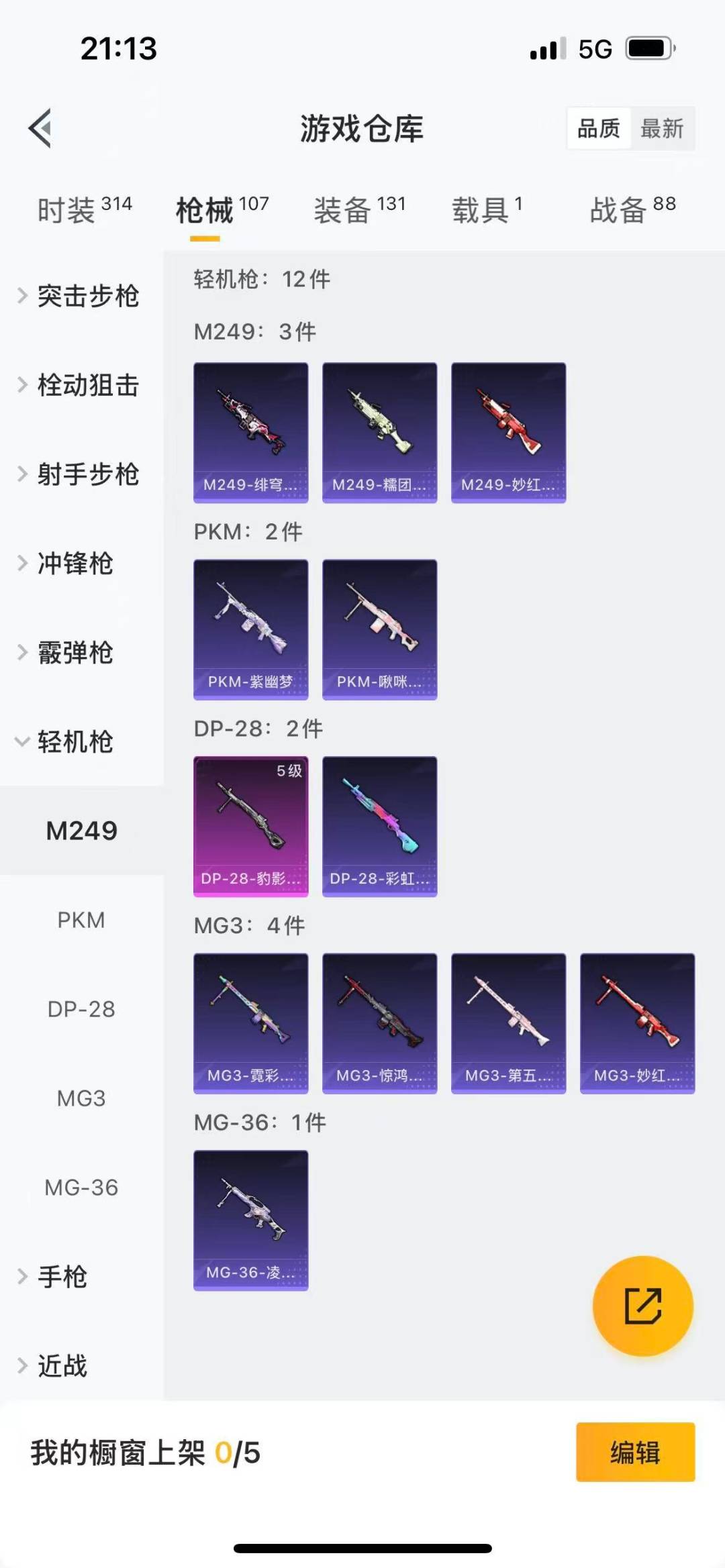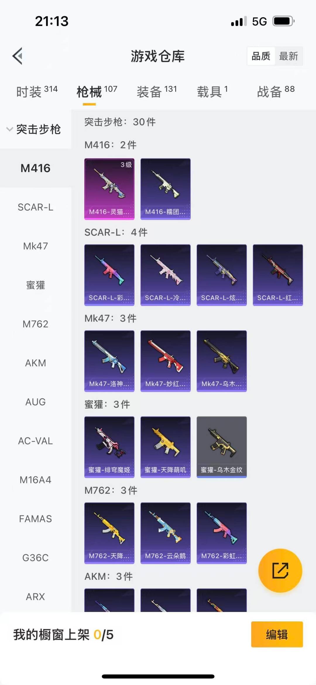 [12146155]7粉装 8特效枪 1载具 6印记 可二次 可修改实名 优质装备:晶梦灵驹,缤纷油彩(猪妹猪脸妹),M417第五大道,晶梦幻蝶,智耀战神,AMR-智耀战神,星穹咏叹调,AKS-74U-星穹咏叹调,冷漠罗丽,P90-冷漠罗丽,M416-灵猫魔法师,绯穹魔姬,Vector-绯穹魔姬,Kar98K-巳巳如意 热门装扮:甜梦小狐 载具:僚机-萌兔起飞 稀有枪皮:DP-28-豹影疾电 五级特效枪:五级Kar98K-巳巳如意,五级DP-28-豹影疾电,五级AMR-智耀战神,五级AKS-74U-星穹咏叹调 四级特效枪:四级P90-冷漠罗丽,四级Vector-绯穹魔姬 三级特效枪:三级M416-灵猫魔法师 二级特效枪:二级M417-第五大道 紫色装扮:莱茵河畔,SS23特训,幻彩翩翩,妙红点点,香榭午后,SS31特训套装,人气偶像,冷焰舞者,极速光影,云朵鹅,彩虹兔,雪绒豹,SS33特训套装,顶瓜瓜,混沌火种,时希公主,灵公主,乐音,软羊咩咩,都市魅力,酒红色名流,酷萌兔限定,长空猛禽,霓虹街区,缤纷果语,绛羽幽主,鹤鸣,黄色伏地魔,黑色伏地魔,龙的传人,龟仙人,极速红龙,柠萌假日,完美偶像,帅气教官,白色伏地魔,破蛋小黄鸡,空岛之星,竞技达人朋克,灼焰舞者,冰公主,异域银装,巳巳如意,竞技名士,SS25特训,锦衣飞扬,SS27特训,明鸳圣池,SS26特训,春光漫游,快闪甜心,贝斯之夜,晶辉守护,大橘大利,星渊小夜曲,星影赞美诗,星谷精灵,耀粉歌者,晶灵使者,粉恋花,蓝冰羽,紫幽梦,SS32特训服(SS32特训套装),青玉碎影,绯格组合,恋语绒绒 优质战备:圣堂之誓降落伞,精灵梦叶罗丽降落伞,莲影清波降落伞,星之彼岸降落伞,时光之誓降落伞,时光之吻降落伞,幻星舰长飞行器,晶梦幻蝶降落伞,冷漠罗丽降落伞,绯穹魔姬降落伞,灵猫魔法师飞行器,灵猫魔法师降落伞,晶梦幻蝶飞行器,暖熊萌萌降落伞,第五大道降落伞