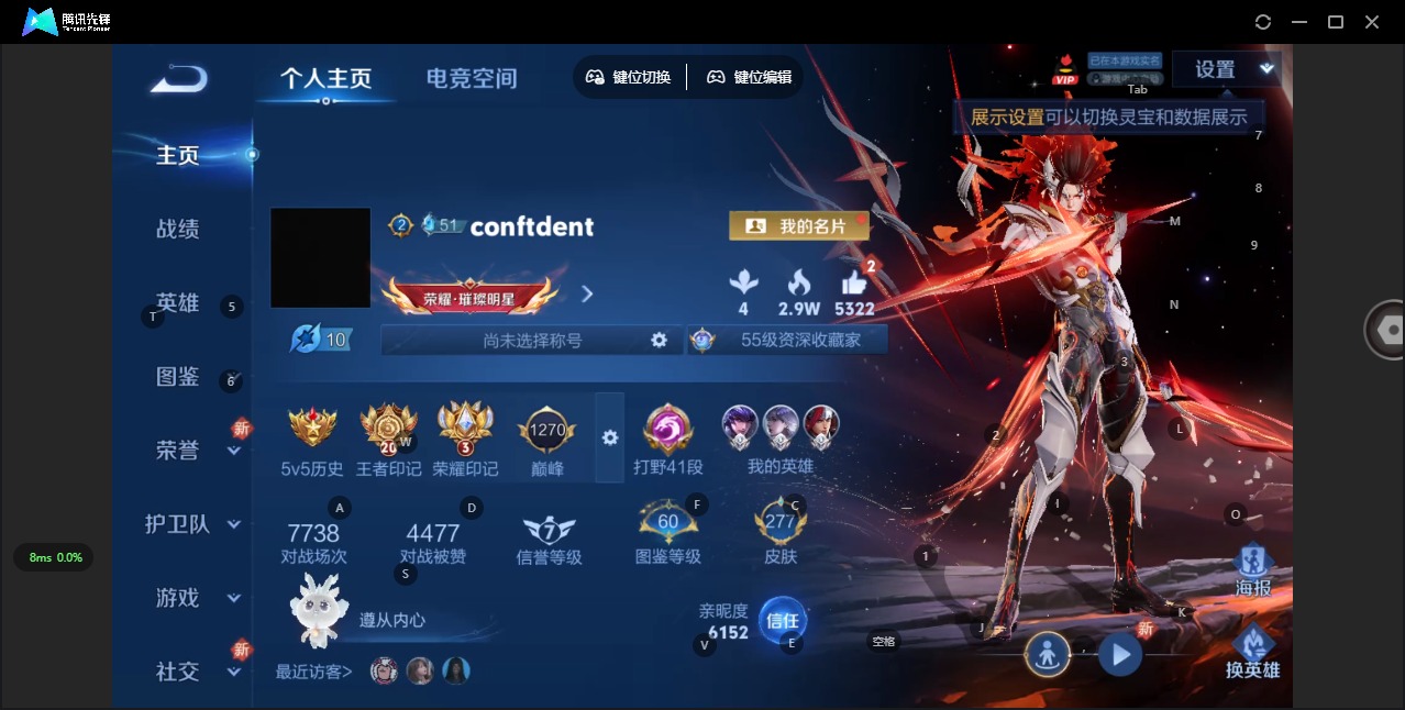 - [11606832]V5 3传说 122英雄 133皮肤 可修改实名 传说皮:幻光神枪 珍宝阁皮:妄想食味 限定皮:愿照·千秋盛(女娲年限),鸣野蒿,梁祝 史诗皮:器灵·浮梦炉,糖绘人间,星界战将,龙之律动,雪豹·霜爪,蒙犽顽岩魄,苍穹之光,黄金分割率,千年之狐,江河有灵,冰冠公主,猫狗日记-孙策,水果甜心,星夜王子,心灵骇客,鬼剑武藏,心灵战警,缤纷独角兽,乘风破浪,逐浪之夏,原初追逐者,圣诞恋歌,鹰眼统帅,暗夜贵公子,未来纪元-赵云
