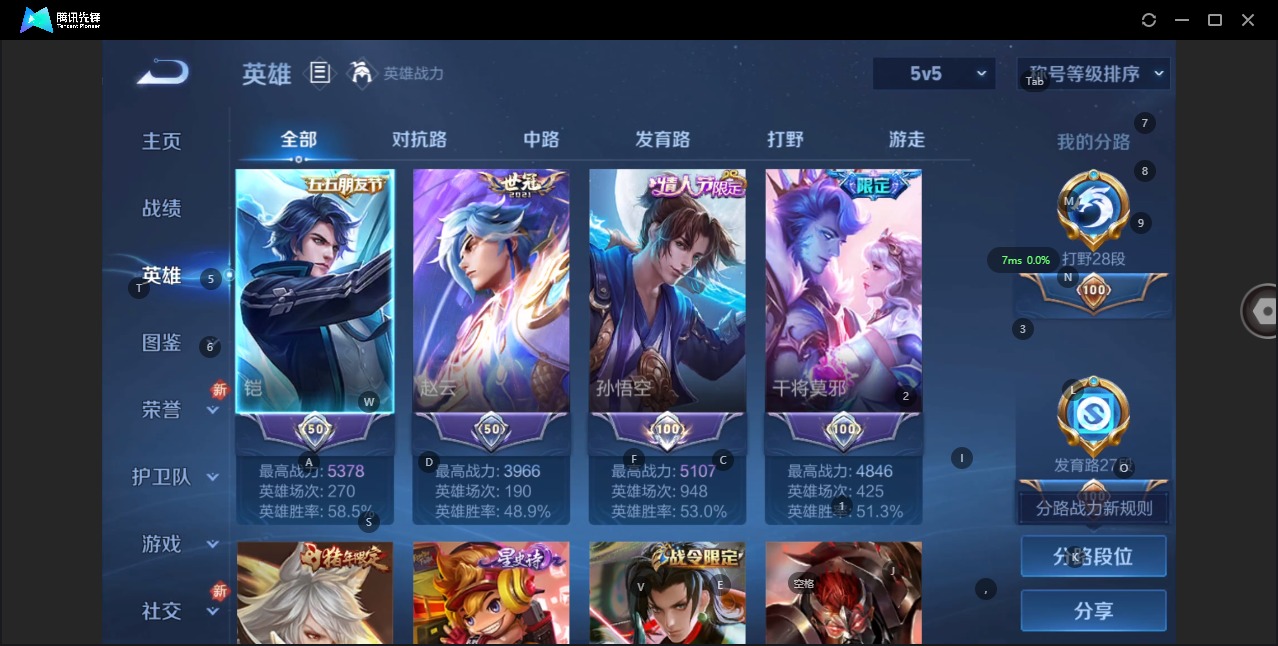 - PX_2111202-实名: 可修改 贵族等级: V5 英雄数: 93 皮肤数: 94 限定皮: 逐霄战戟,愿照·岁时盈