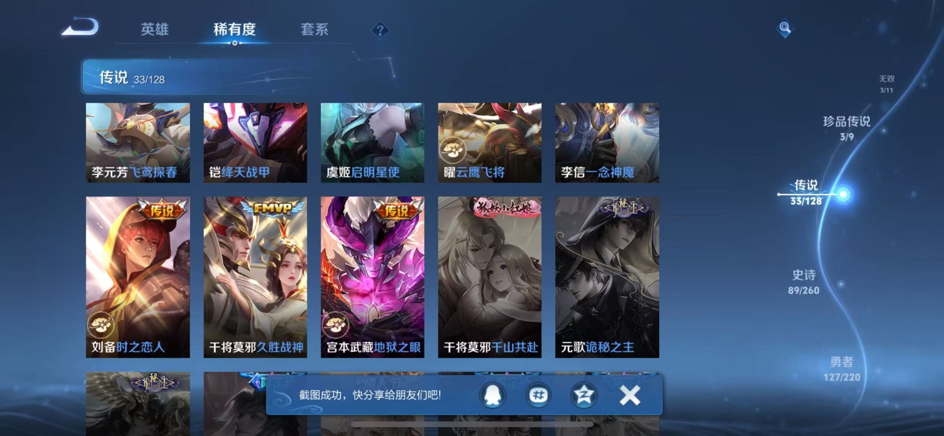 - [12091524]V7 5传说 123英雄 226皮肤 可修改实名 优质装备:猫影幻舞,末日机甲-孙尚香(绿蚂蚱) 珍宝阁皮:女武神,玩趣恶龙 限定皮:鸣野蒿,至尊宝,凤求凰(白切鸡),武陵仙君(小桃花),遇见飞天,五谷丰年,游园惊梦,梁祝,天狼狩猎者,天狼绘梦者,李小龙,冰霜恋舞曲,山海·玄木吟(马可年限) 史诗皮:灵蛊蚀心,星界战将,琥珀纪元伽罗,紫霞仙子,电玩小子(小书包),黄金分割率,特工魅影,千年之狐,江河有灵,魅语,蒙恬荣光圣徽,无限星赏官,电玩·爆裂旋风,末日机甲-吕布,猫狗日记-孙策,乱世虎臣,节奏热浪,修罗,女仆咖啡,摇滚巨星,水果甜心,星夜王子,功夫厨神,鬼剑武藏,心灵战警,地狱岩魂,纤云弄巧,繁星吟游(呼啦呼啦),逐浪之夏,水晶猎龙者,曙光守护者,金属风暴,原初追逐者,圣诞狂欢,鹰眼统帅,黎明之约,无心,未来纪元-赵云