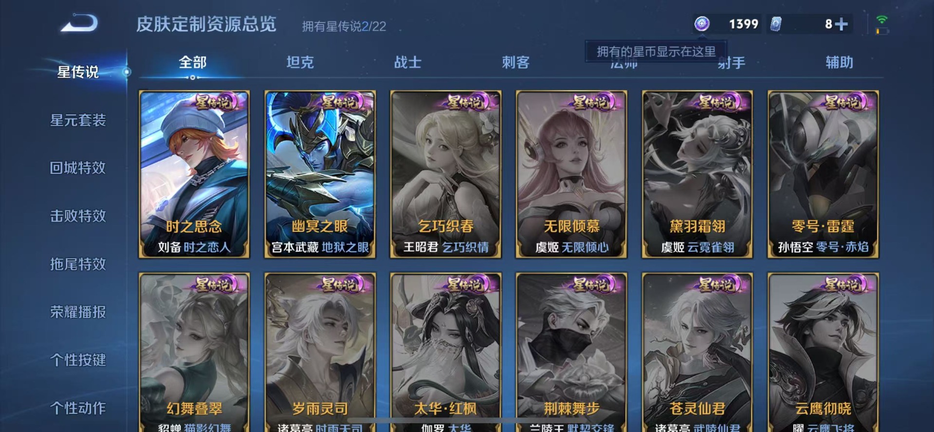 后羿辉光之辰,兰陵王影龙天霄,李白诗剑行,马可波罗深海之息,西施至美·乘鲤谣,桑启鸣野蒿,女娲愿照·千秋盛,澜愿照·九州拓,橘右京枫霜尽
