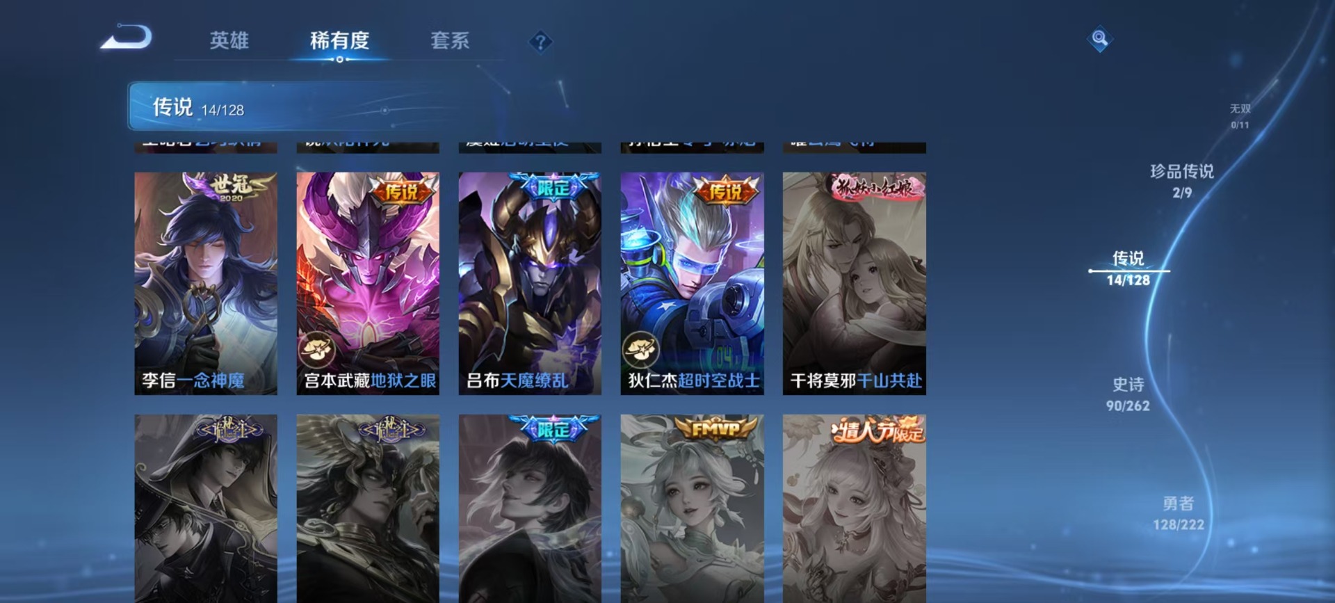 - [12171849]V6 3传说 124英雄 169皮肤 可修改实名 优质装备:地狱火 传说皮:幻光神枪 珍宝阁皮:蔷薇恋人 限定皮:鸣野蒿,飞衡(韩信年限),高山流水,梁祝,李小龙,辉光之辰,默契交锋-花木兰,猪悟能,大圣娶亲 史诗皮:苍穹之光,电玩小子(小书包),黄金分割率,千年之狐,无限星赏官,龙骑士(小龙虾),末日机甲-吕布,乱世虎臣,节奏热浪,水果甜心,德古拉伯爵,幽灵船长,繁星吟游(呼啦呼啦),拒霜思,缤纷独角兽,逐浪之夏,水晶猎龙者,曙光守护者,鹰眼统帅,魅力维加斯,未来纪元-赵云