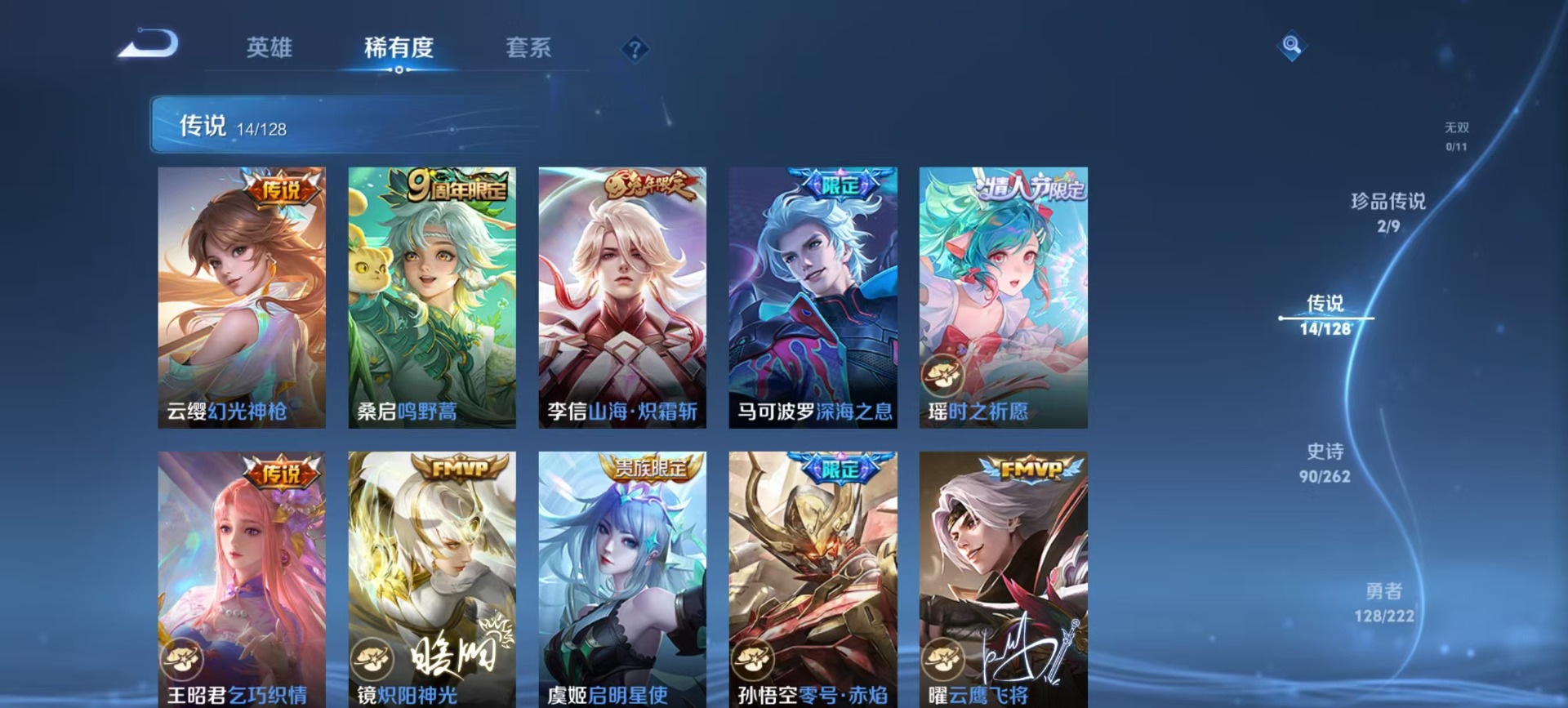 - PX_2105156-贵族9/皮肤446/典藏5/传说40/史诗136/英雄125/无限飓风号/九霄神辉/赤影疾锋/神鉴启示录/瑶拾光映像/曜器灵螭龙剑/优雅恋人/女武神/特工战影/地狱之眼/末日机甲女/胖达荣荣/白虎志/黄金狮子座/云霓雀翎/一念神魔/武圣/零号赤焰/启明星使/炽阳神光/祈雪灵祝/李逍遥/游龙清影/淬星耀世/异界灵契/寅虎赤拳/无双飞将/前尘镜/诗剑行/怒海麟威/山海苍雷引/浮生