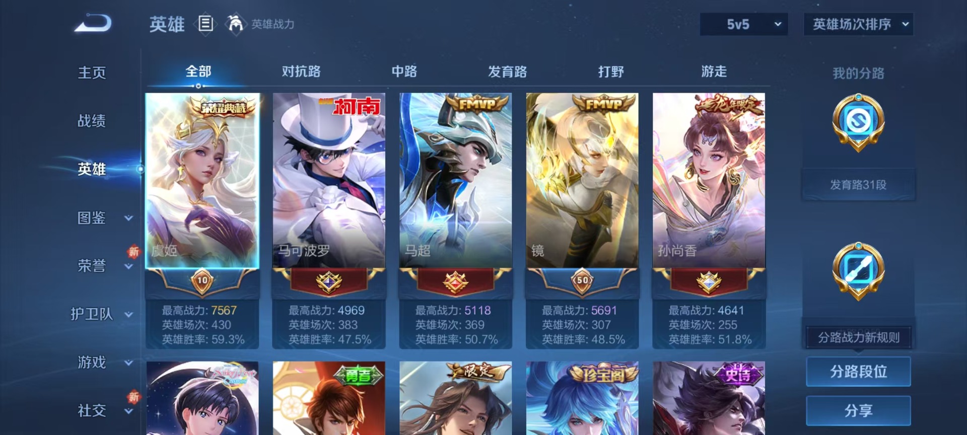 - PX_2096832-实名: 可修改 贵族等级: V4 英雄数: 94 皮肤数: 67 传说皮: 乘龙·淬吴钩,典韦战鼓燎原